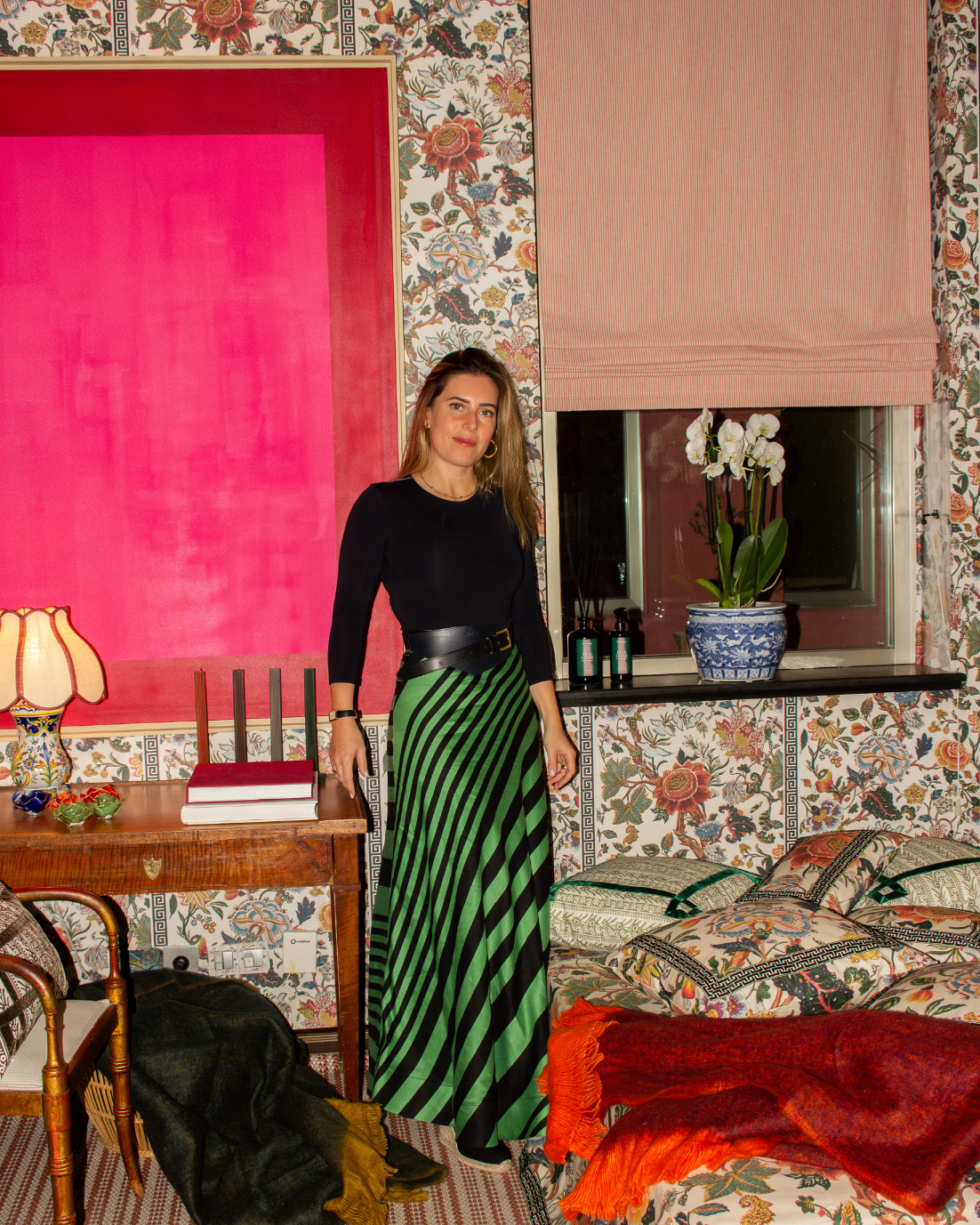 La diseñadora María Masó, que ha sido la encargada de crear y decorar este espacio, apuesta por nuestro Papel Pintado Carlota para inundar toda la habitación de color e historia. Una elección que combina a la perfección con el resto de la habitación, aportando armonía, estilo y un toque distintivo al ambiente.