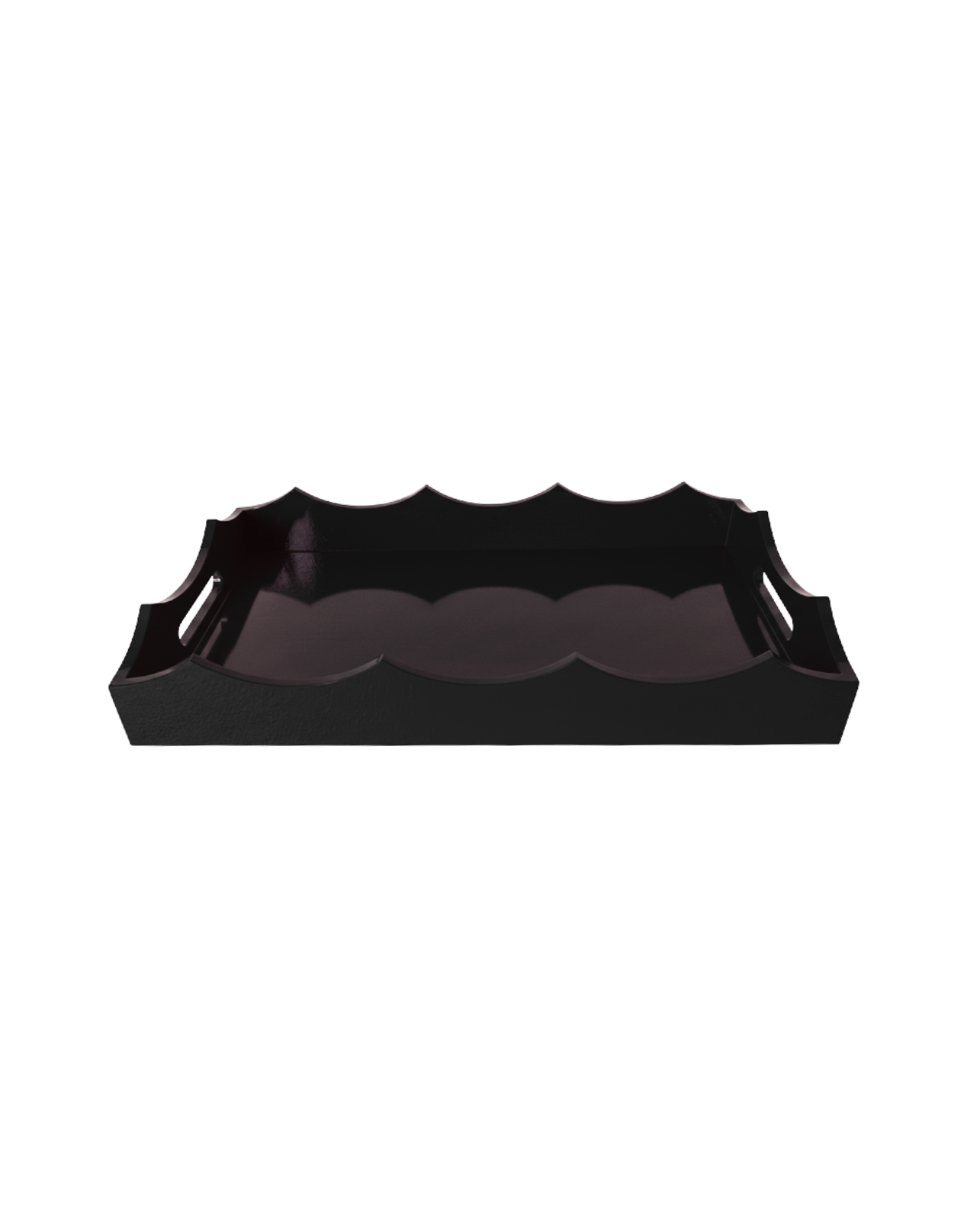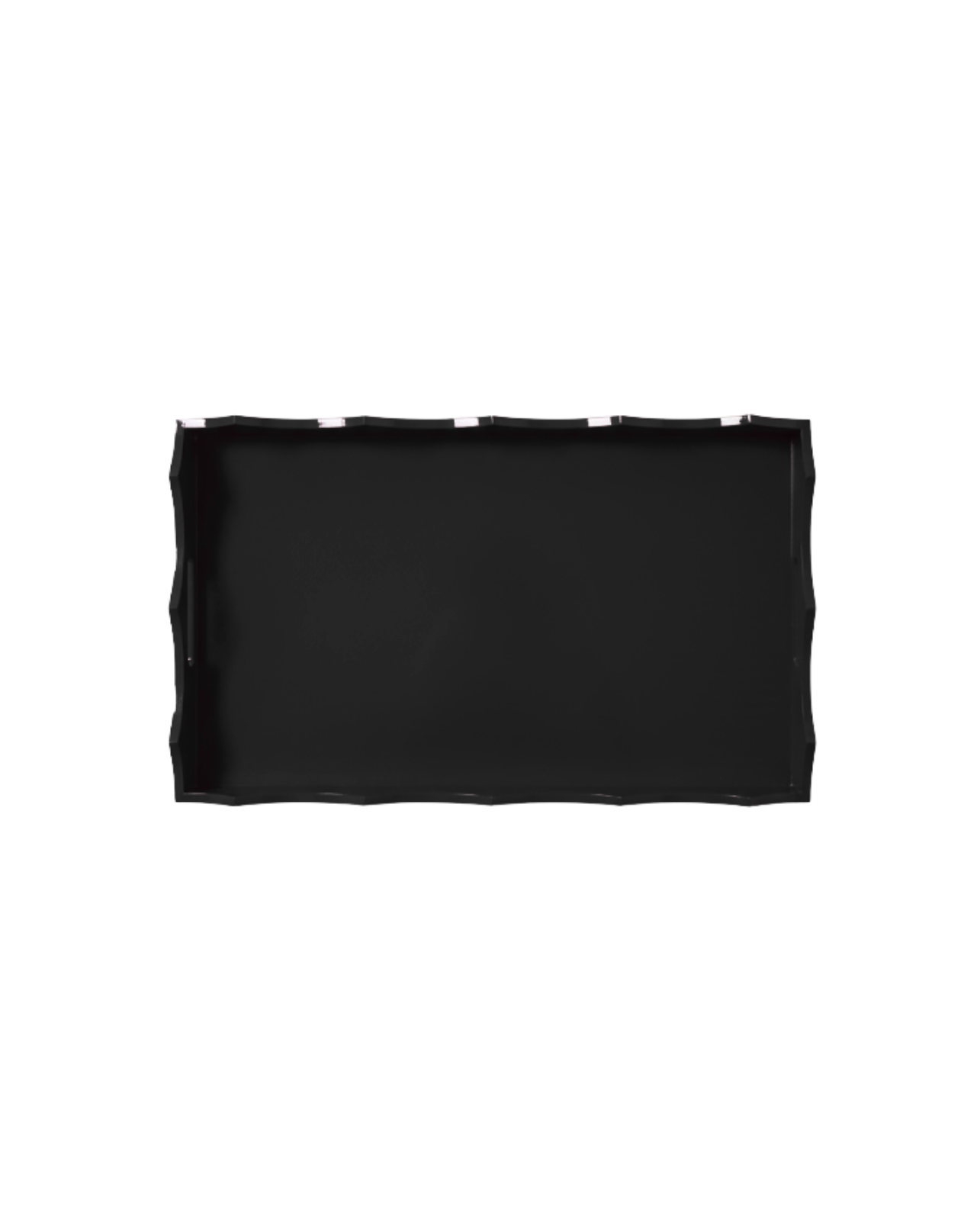 Large rectangular bamboo tray lacquered in black with a decorative wavy edge. Available in other sizes and colors.