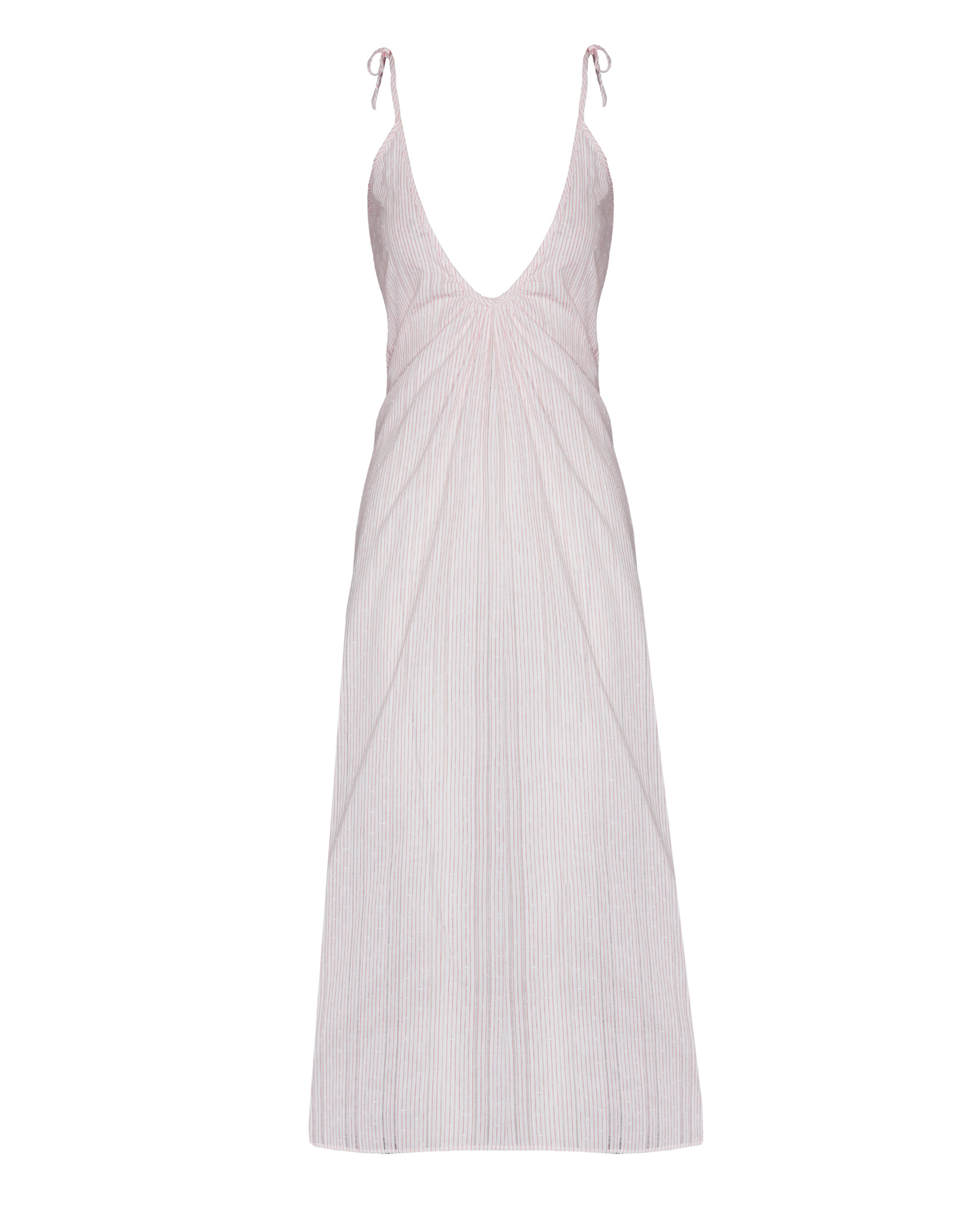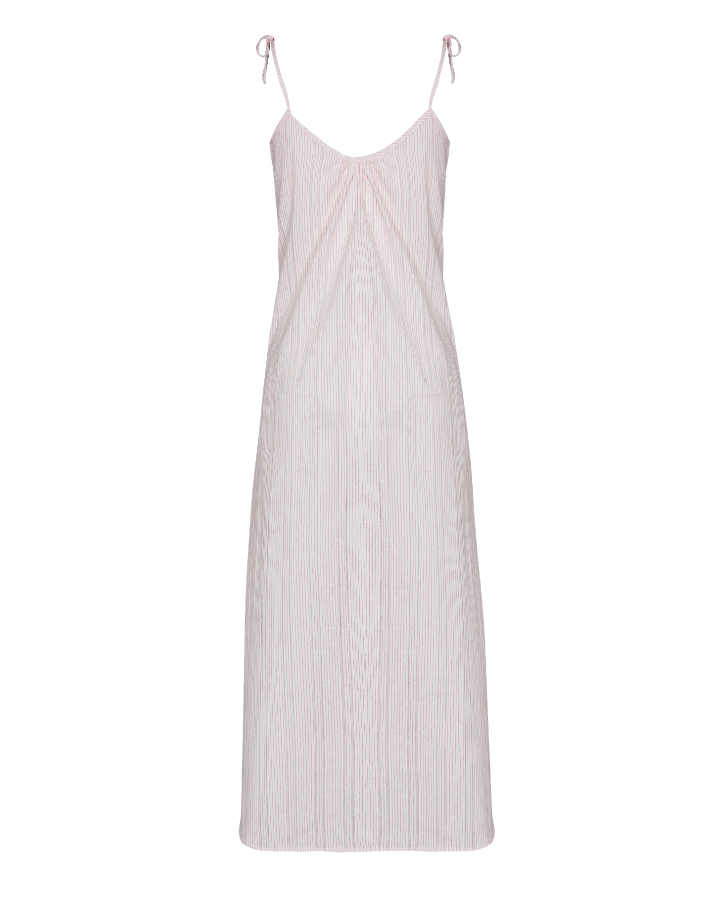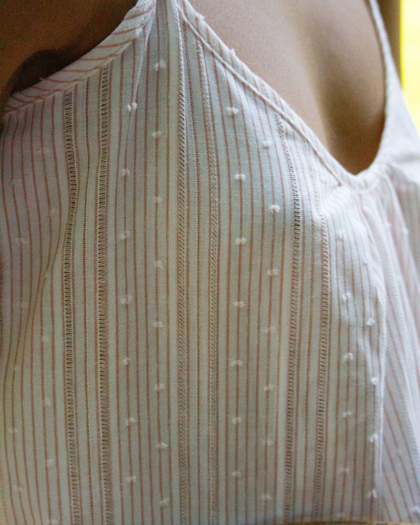 100% cotton eyelet camisole with perforated detail in white with coral stripe print. Adjustable tie straps and open back. Also available in blue. C Special collection " IQ gets dressed in pink".