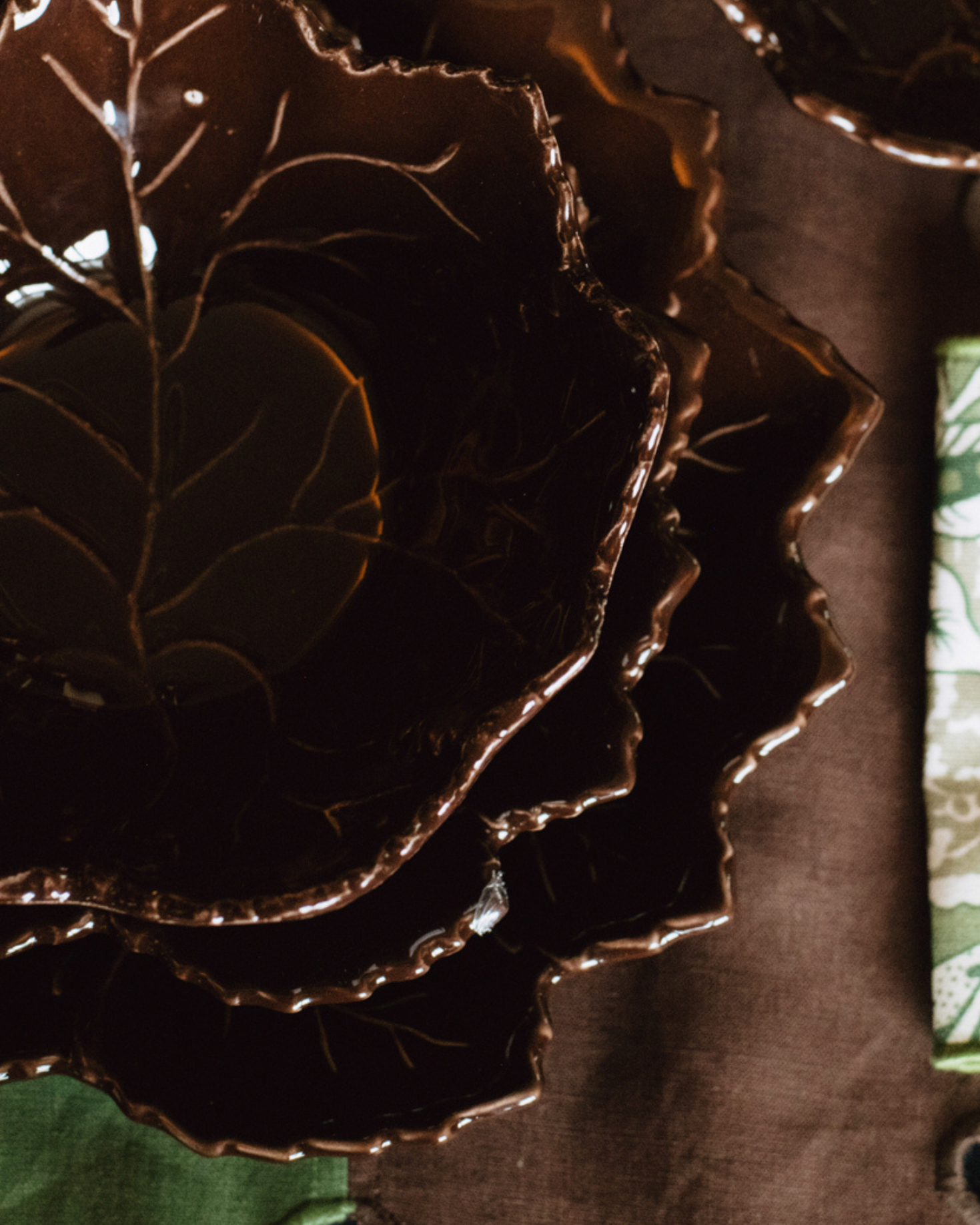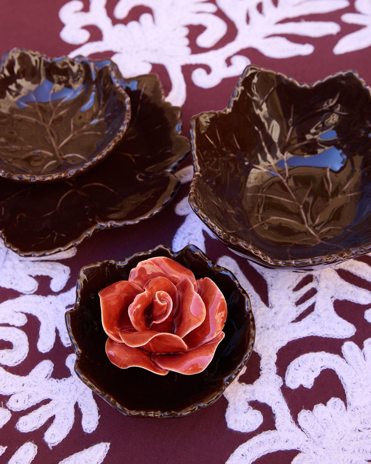 Leaf-shaped ceramic bowl, hand-made and hand-painted.