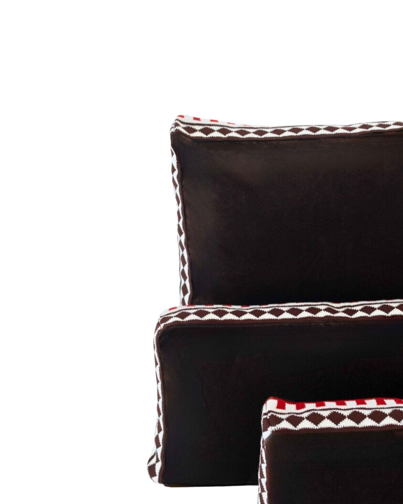 Medium cushion cover with wide border made of velvet. Available in four shades: green, brown, orange and rust. Does not include filling.