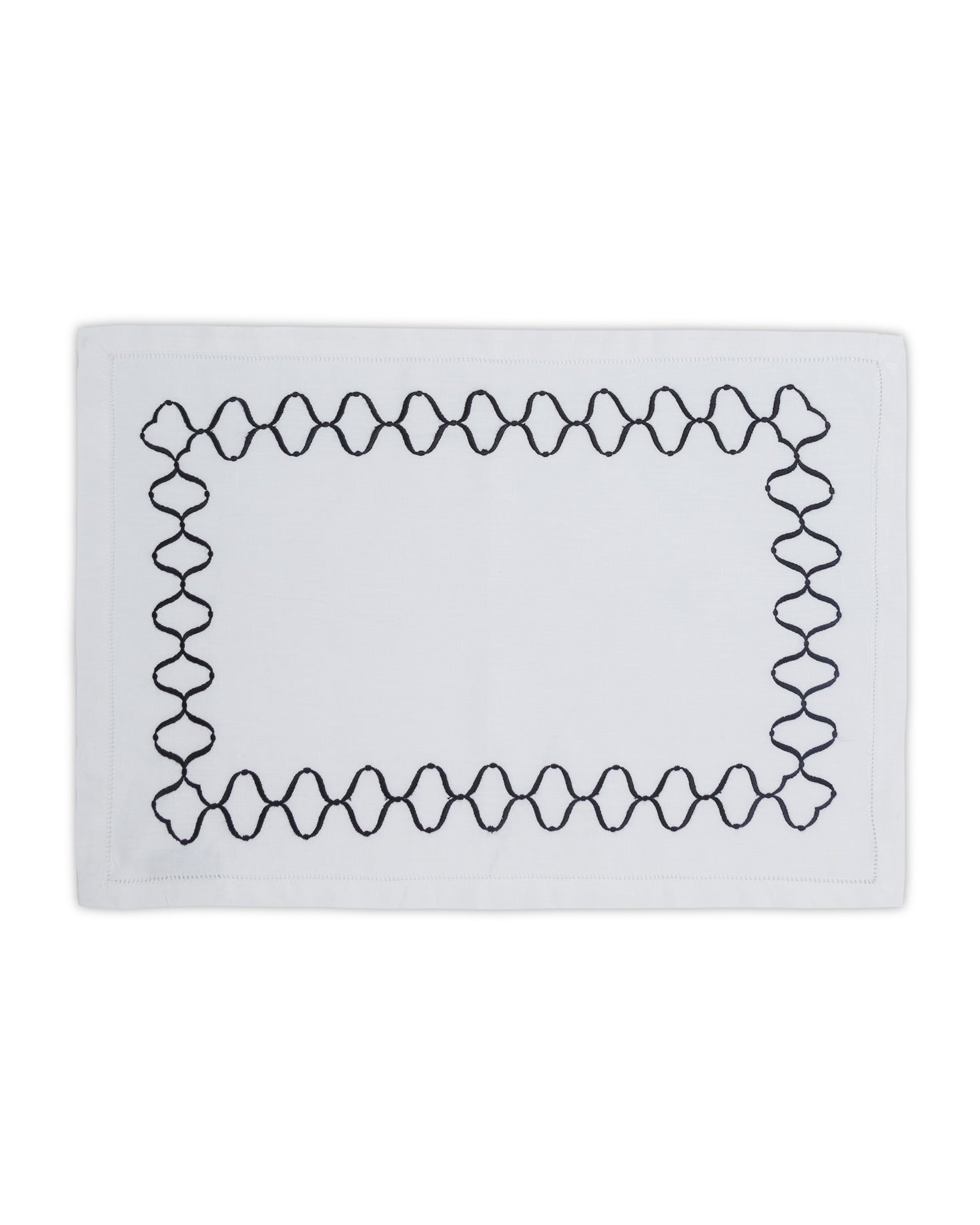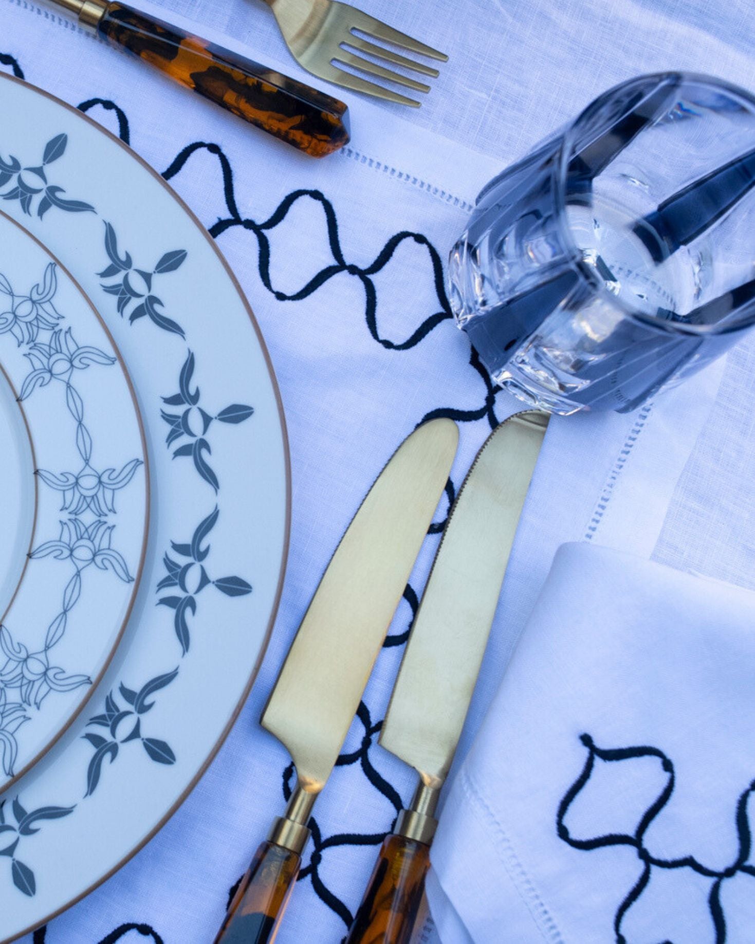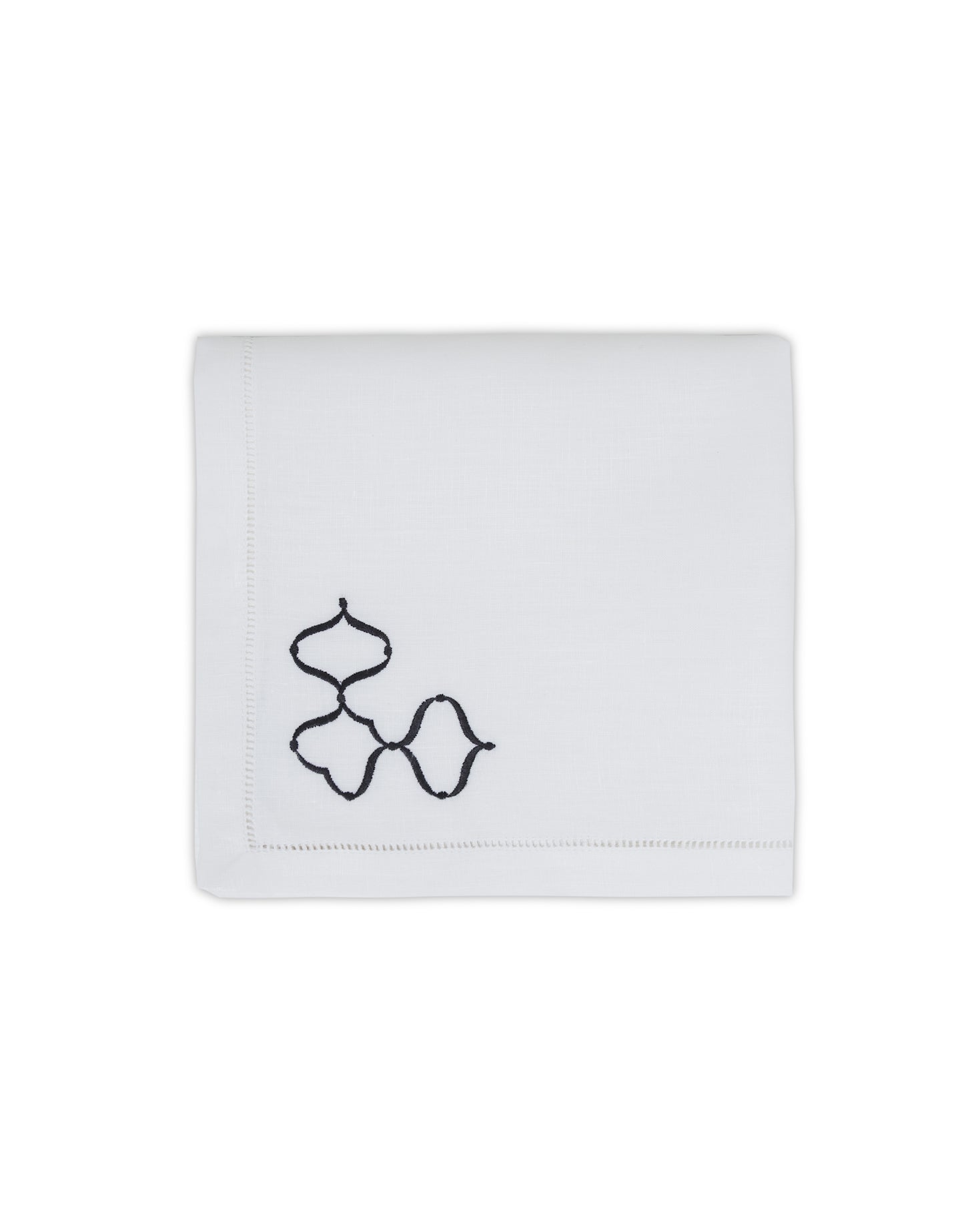 Individual set and white linen napkin with black embroidered chain . Made of 100% linen.