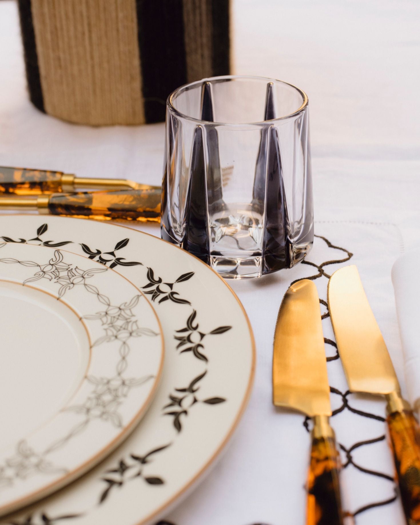 INDIVIDUAL AND LINEN NAPKIN WITH BLACK EMBROIDERY