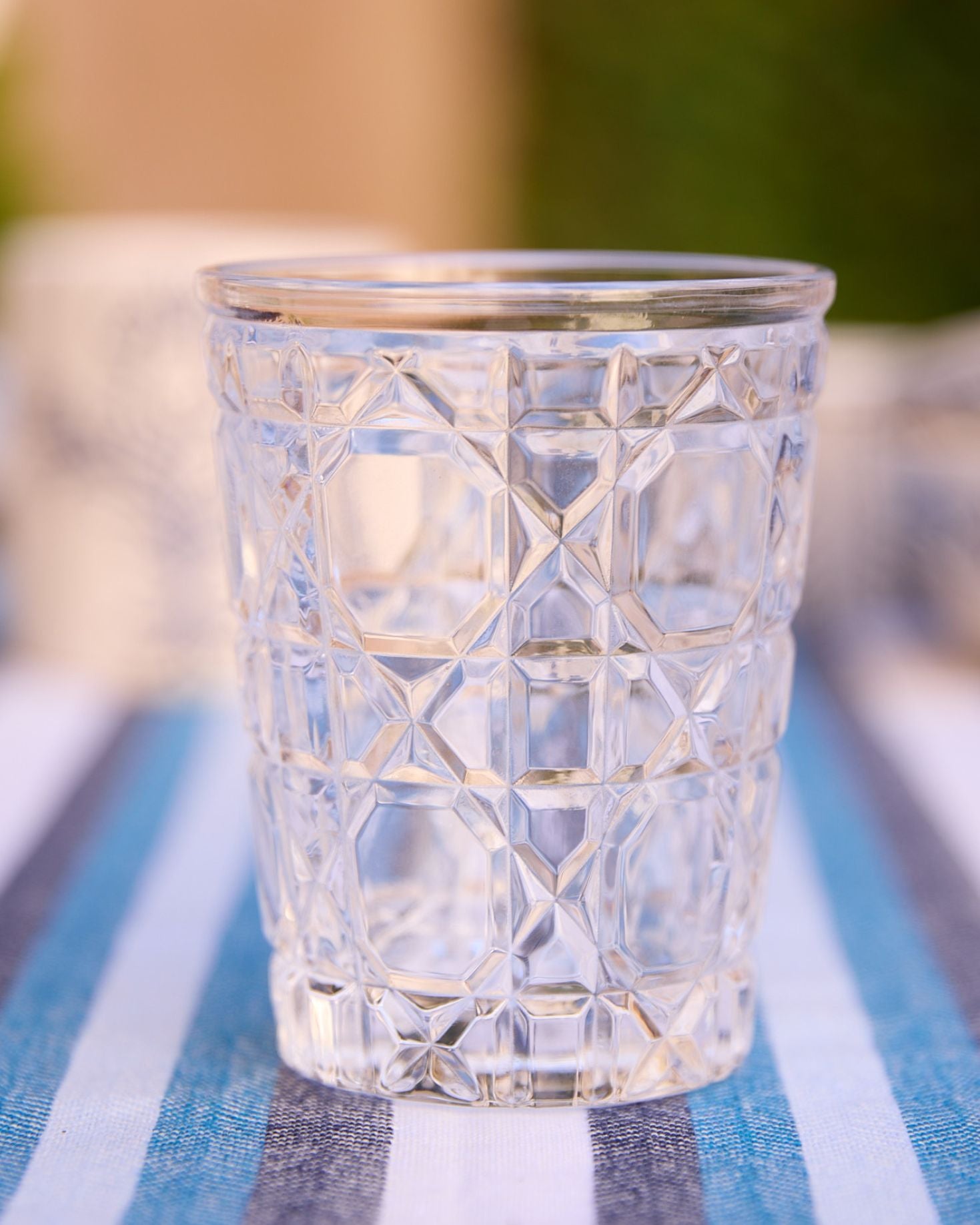 Crystal glass with relief in transparent color. Thanks to their timeless design, these glasses are ideal for both everyday use and for those occasions when you want to impress your guests.