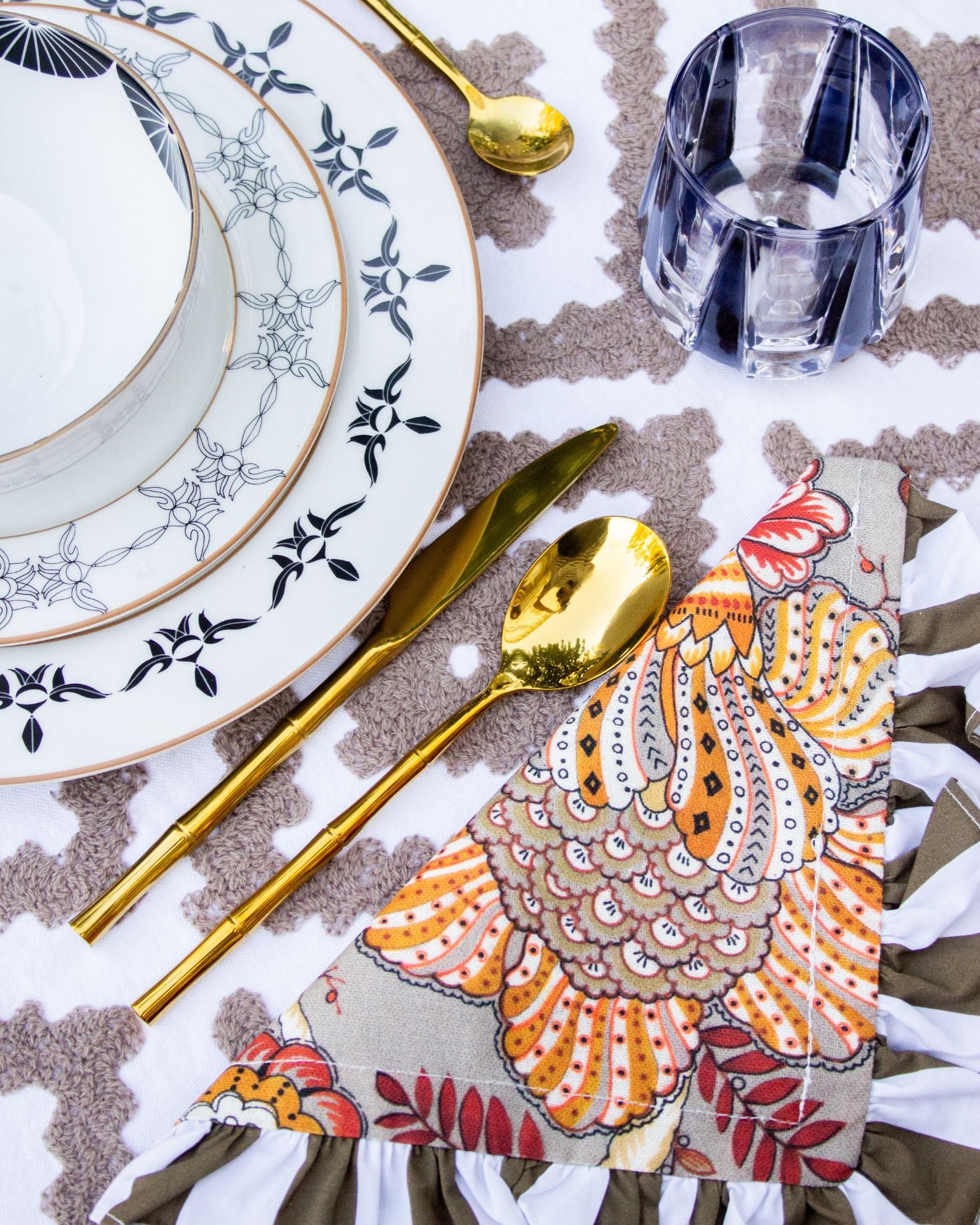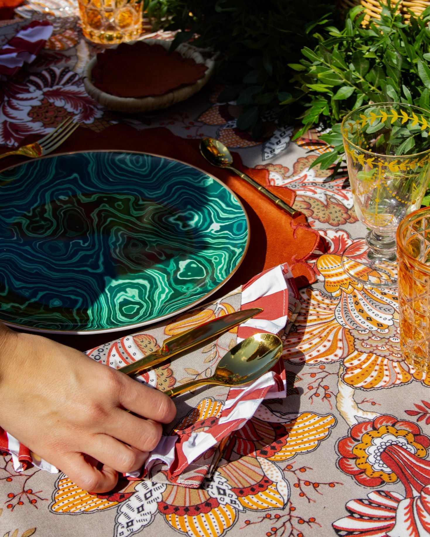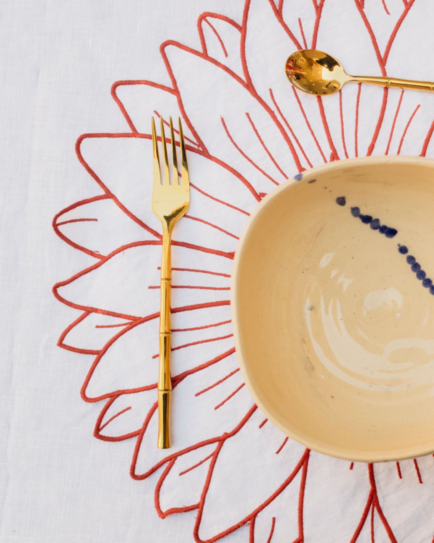 Gold-coloured stainless steel cutlery. The pieces are sold in boxes of 4 units in our black box screen-printed with the logo.