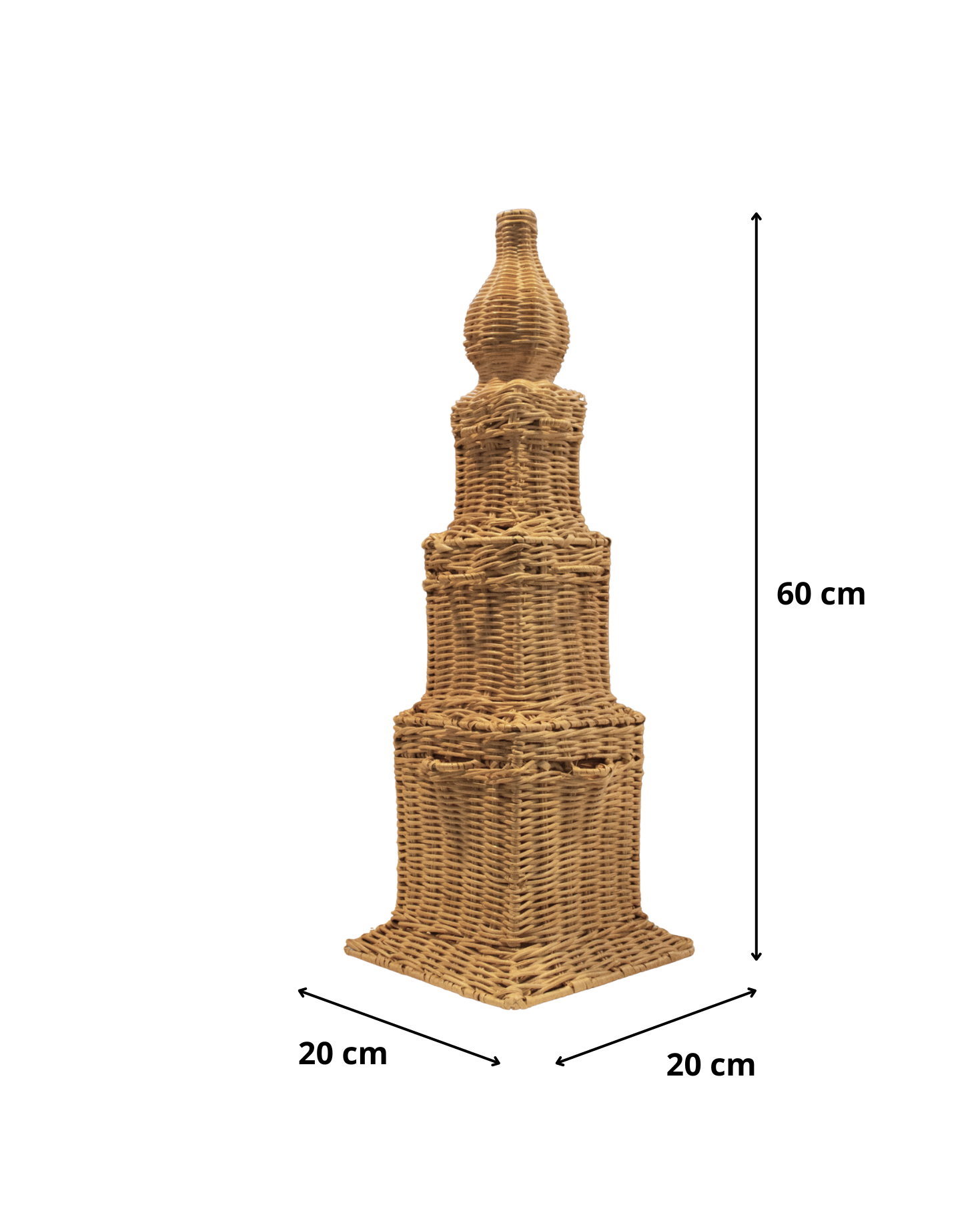 This product is made of rattan and wicker, crafted by expert artisans who work with natural pieces using traditional techniques passed down through generations. The weaving process not only ensures a sturdy structure but also creates organic shapes and unique details that can only be achieved through truly artisanal work.
