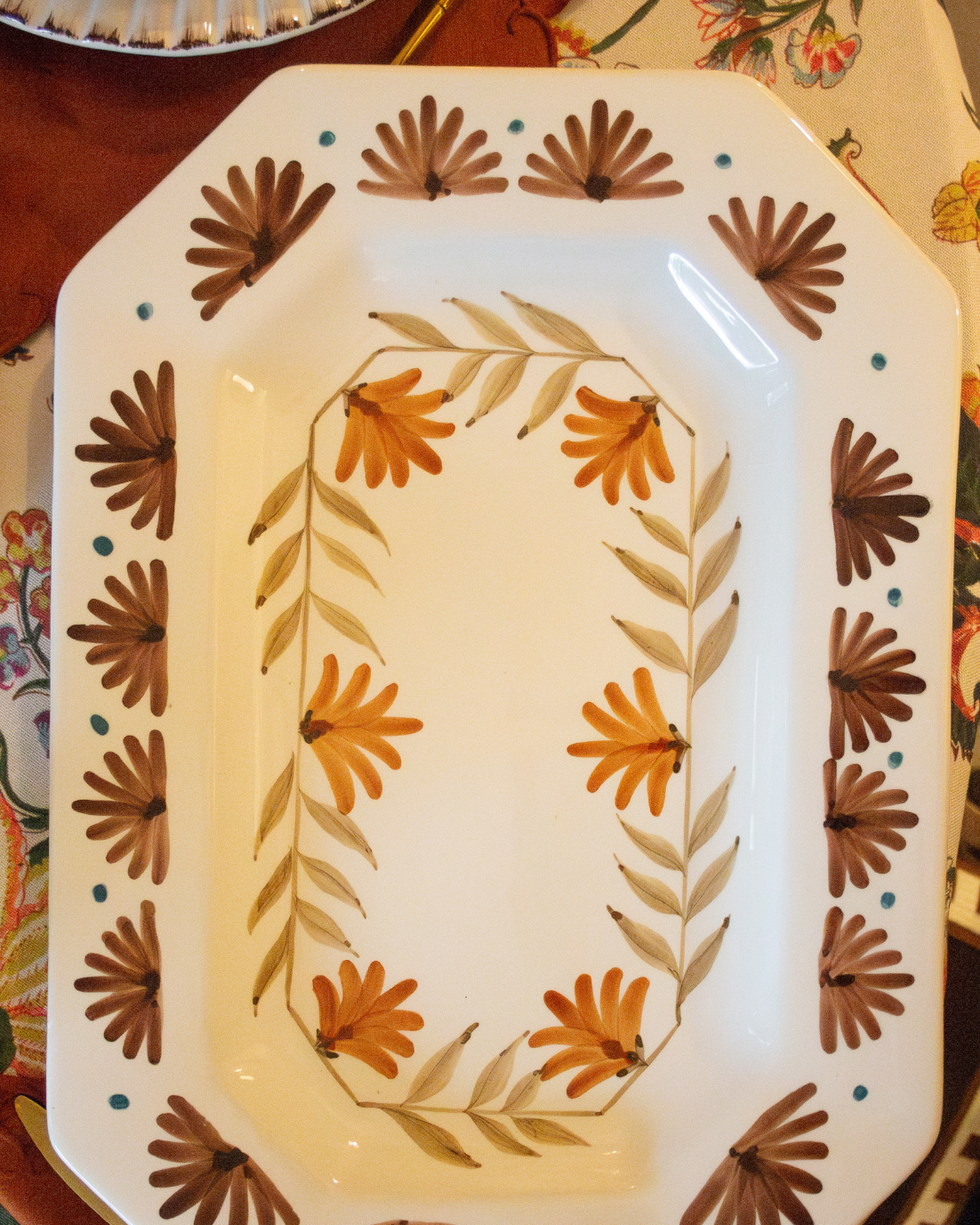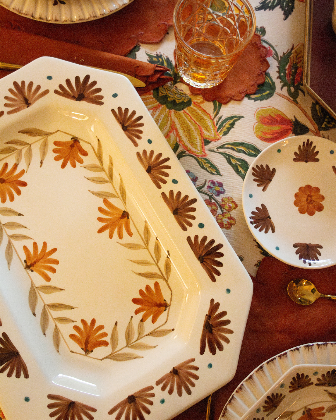 Rectangular appetizer platter made of hand-painted ceramic Terracotta and brown tones with floral details. Also available in green and blue tones.
