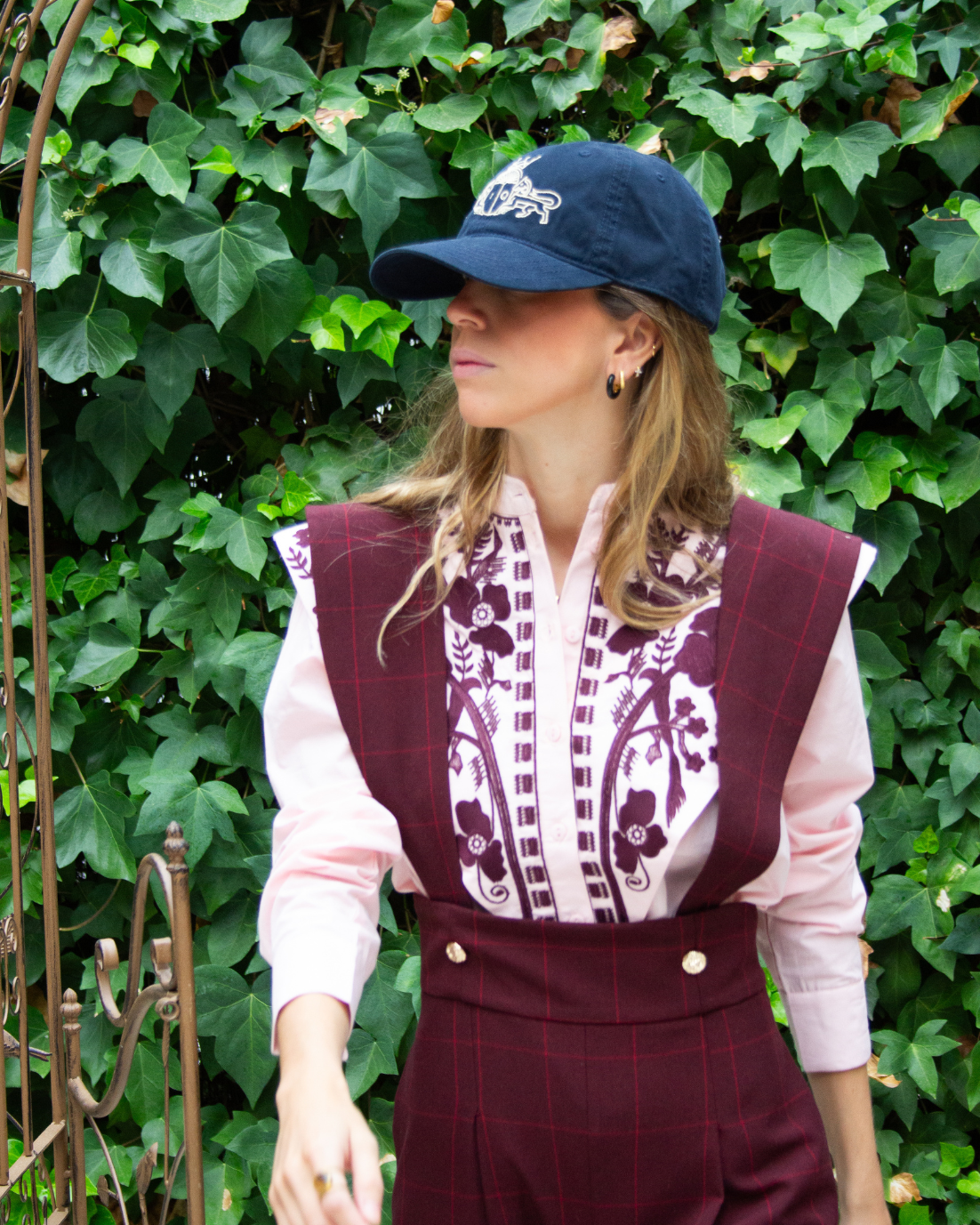 Gorra solidaria de color azul marino con logo de The IQ Collection por delante y siglas bordadas en la parte trasera. Bordado lateral solidario contra el cáncer de mama. Ajustable en la parte posterior. Talla única. Colección especial "IQ se viste de rosa".