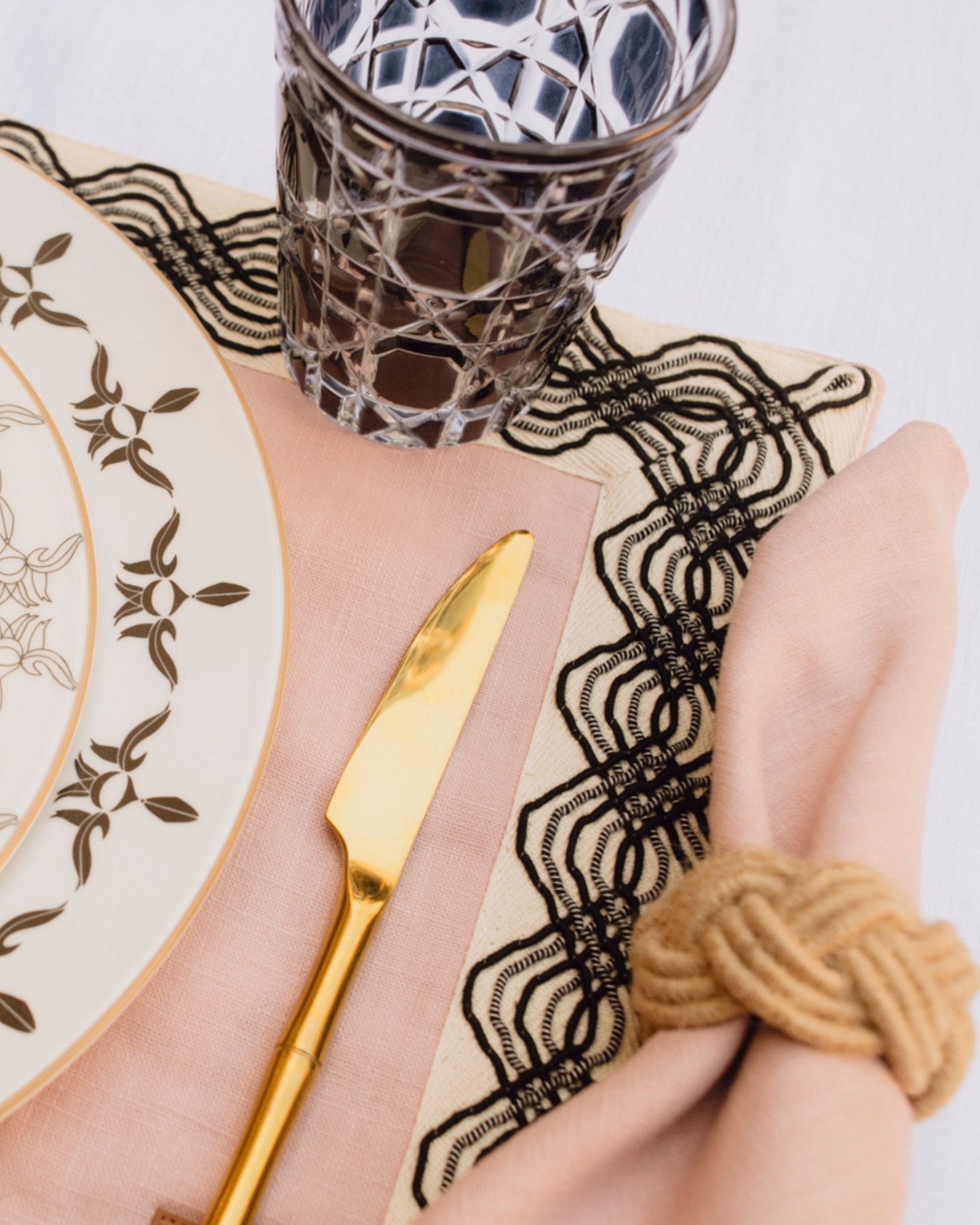 Placemat and napkin set made of 100% linen. Placemat with black border.