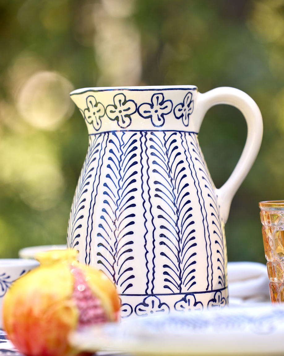 Ceramic jug made of hand-painted ceramic in blue with natural details.