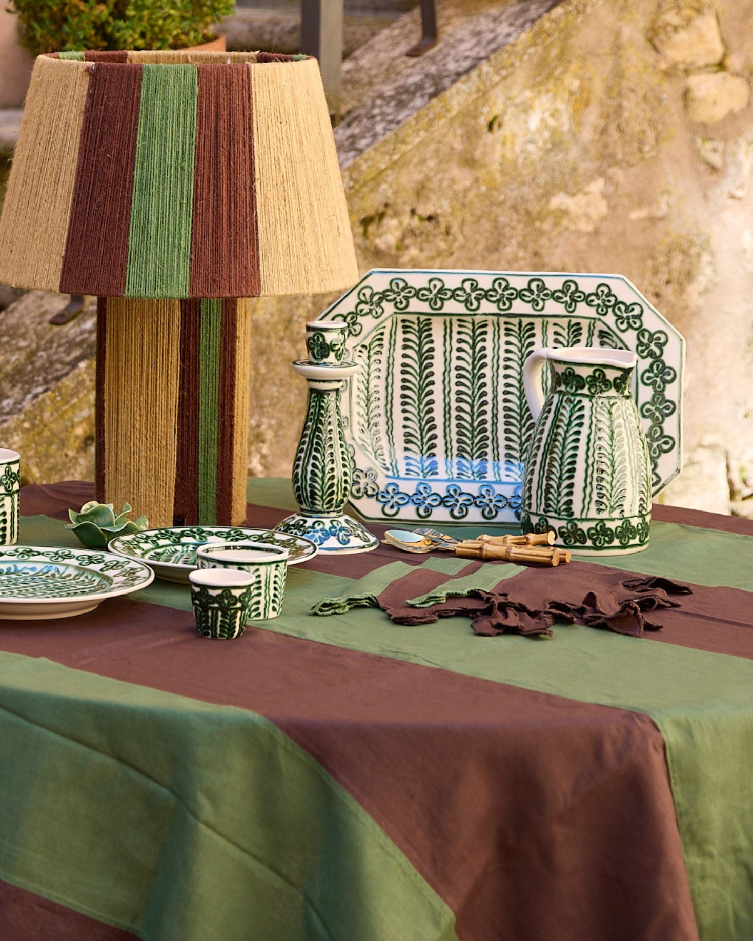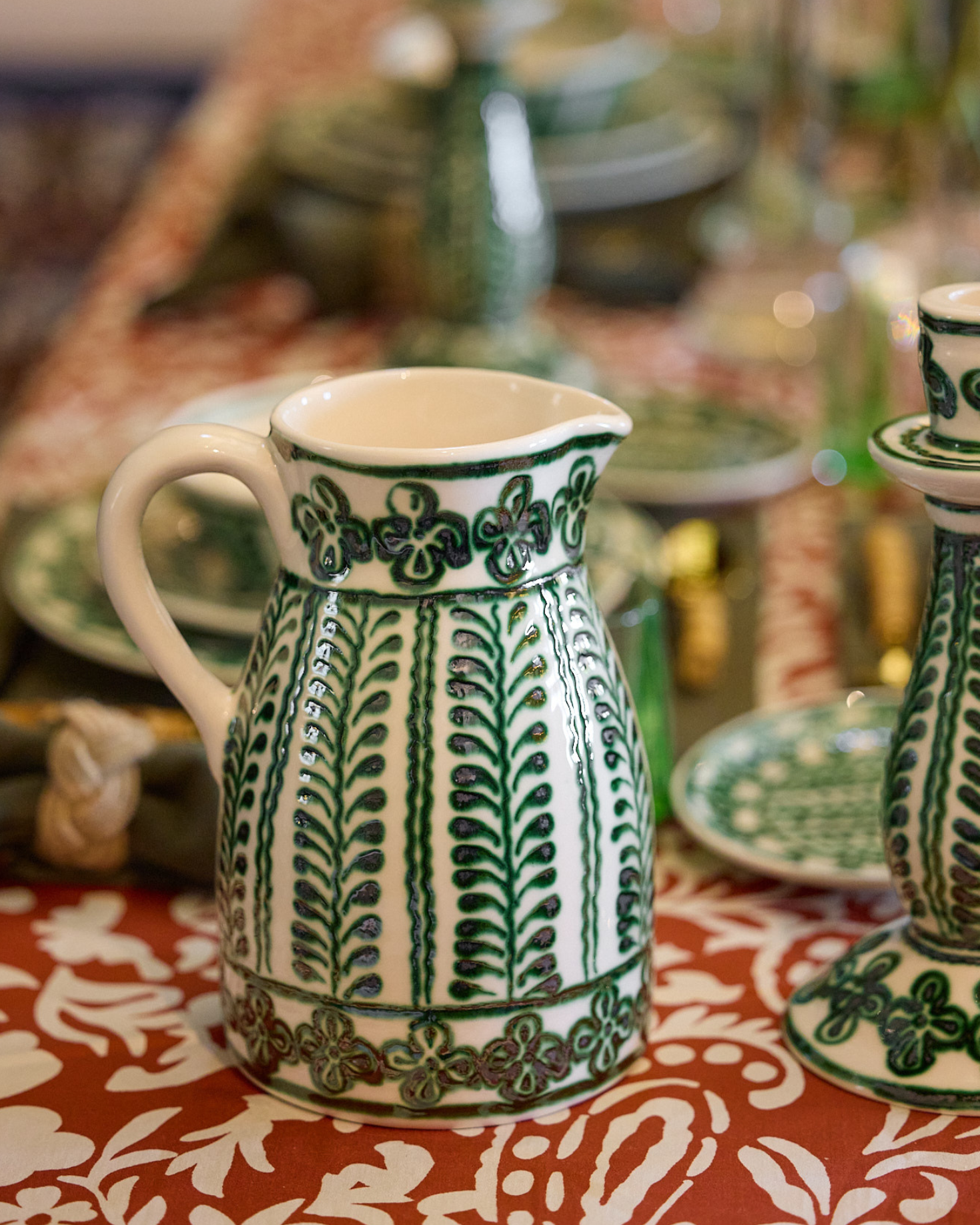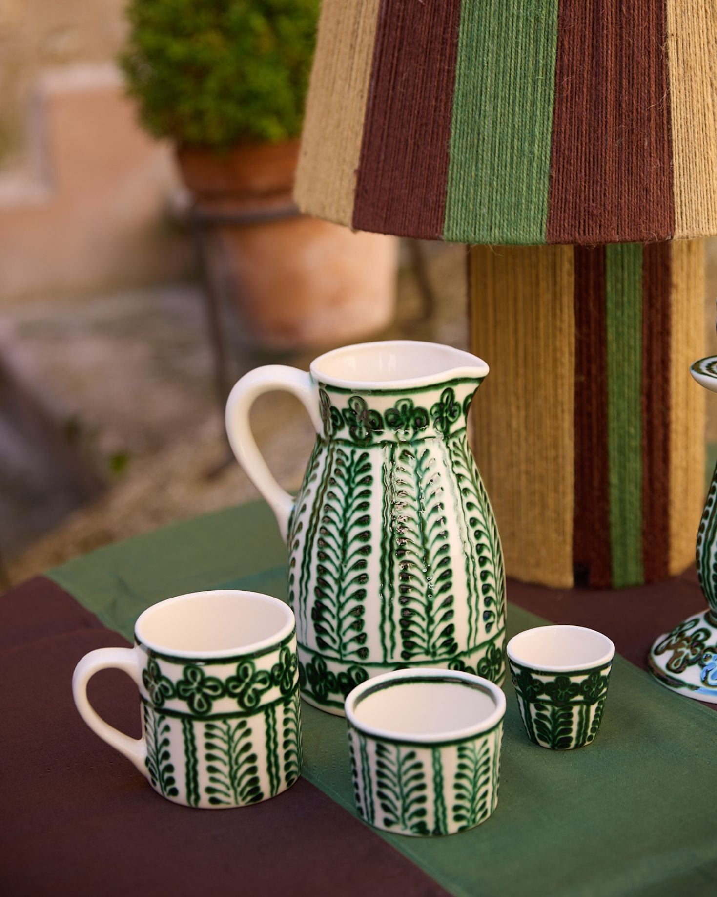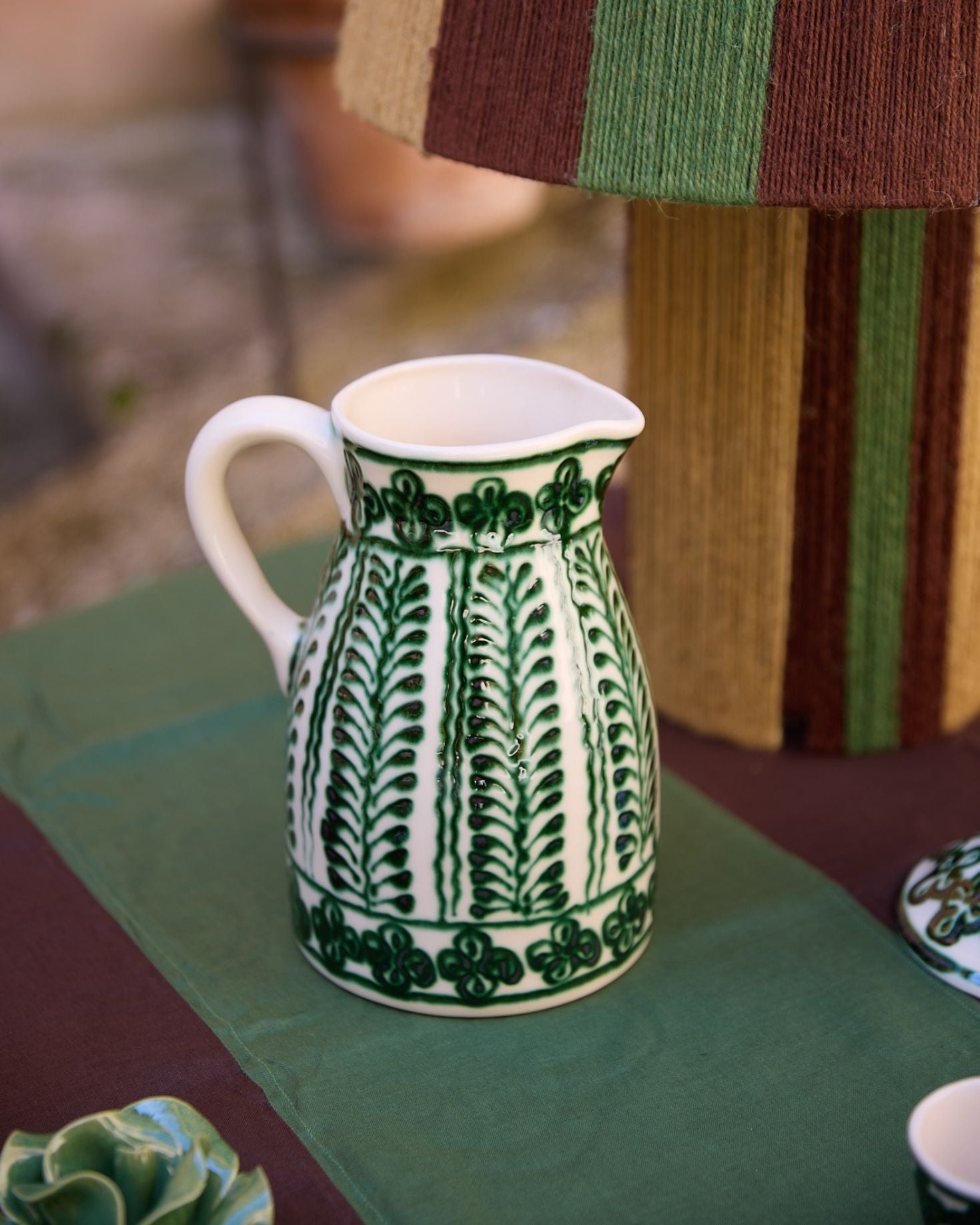 Ceramic jug made of hand-painted ceramic in green with natural details.