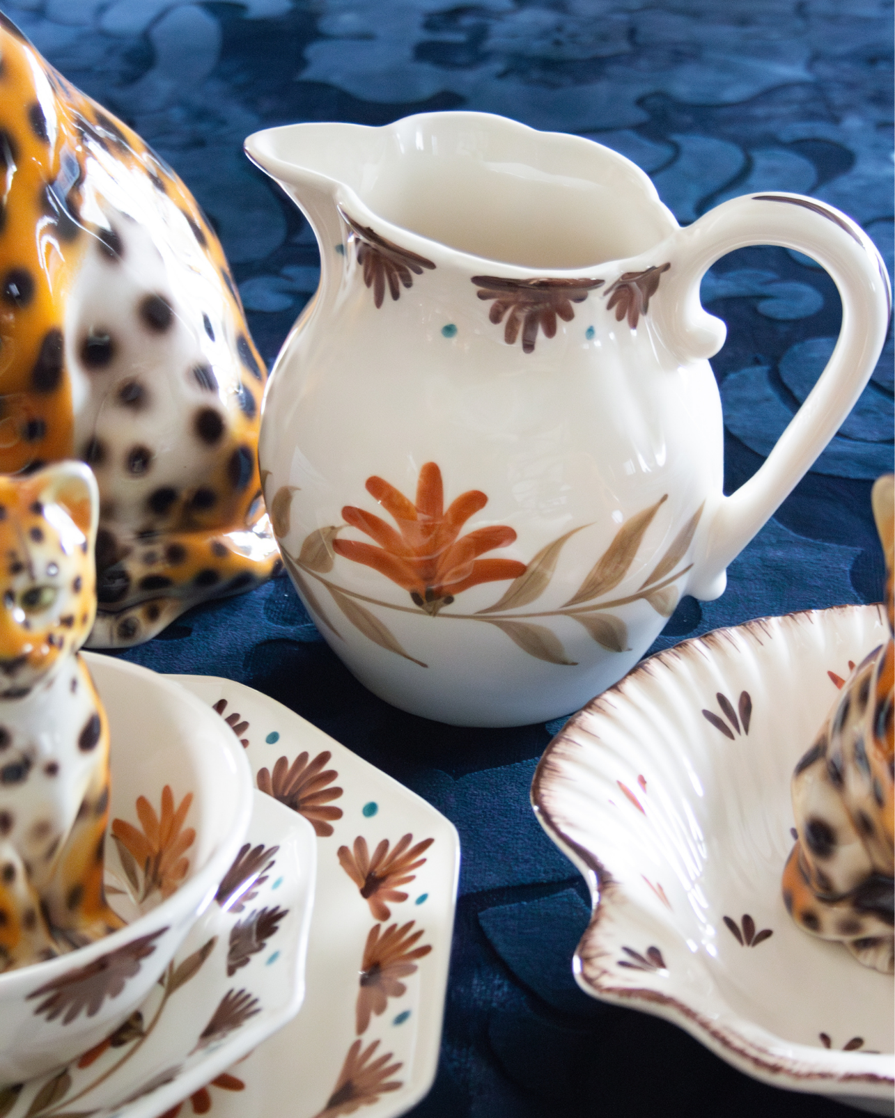 Ceramic jug made of hand-painted ceramic Terracotta and brown tones with floral details. Also available in green and blue tones.