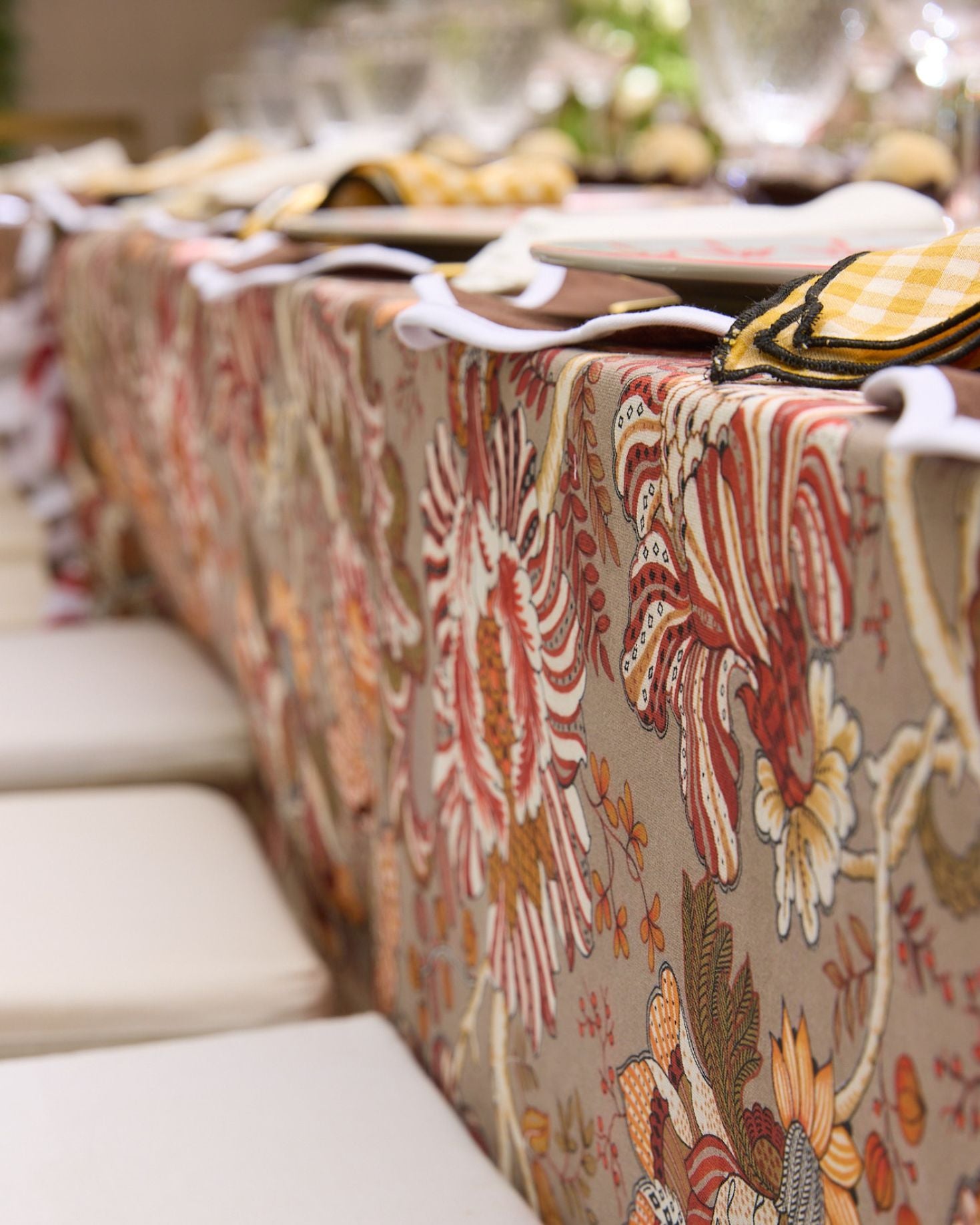 Beautify your table with our exquisite tablecloth, designed to add a touch of sophistication and warmth to your meals. Crafted from high-quality fabrics, this tablecloth is not only functional but also adds a charming style to any setting, whether for a formal dinner or a get-together with friends and family.