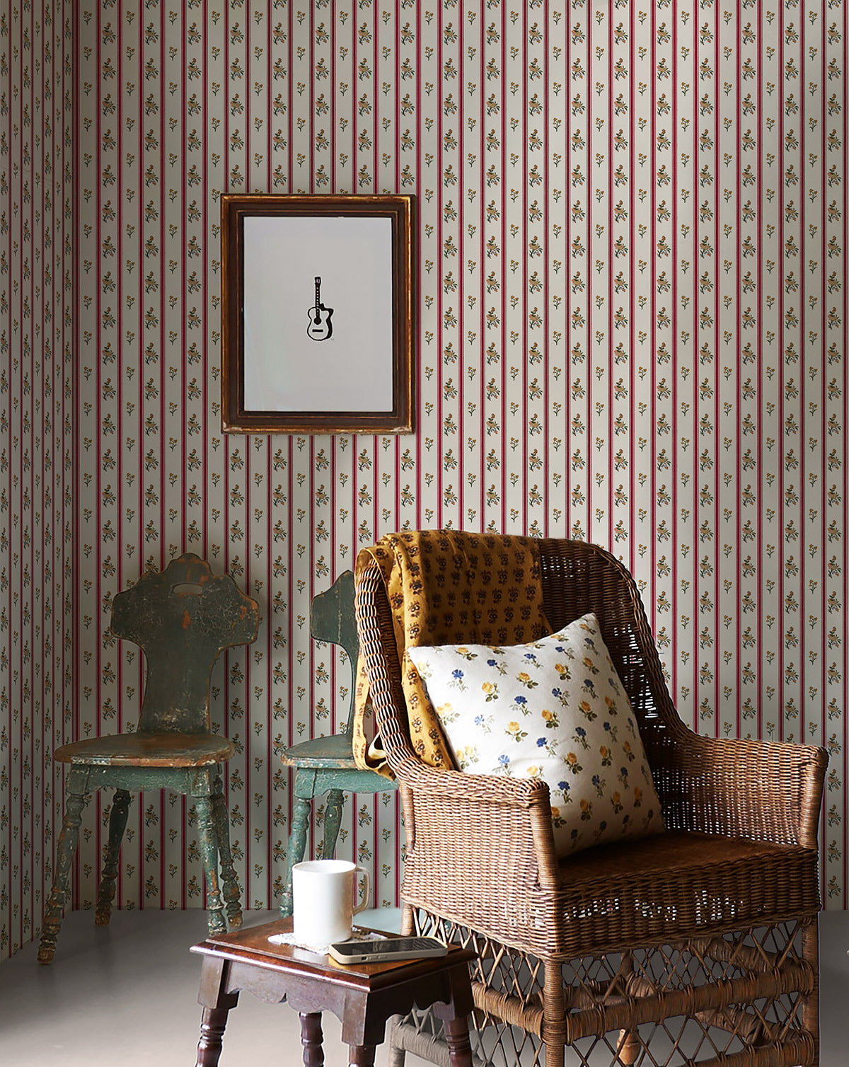 LUCÍA es un papel pintado de guardas florales, alegre y femenino, diseño en colaboración con Carolina Colomba.