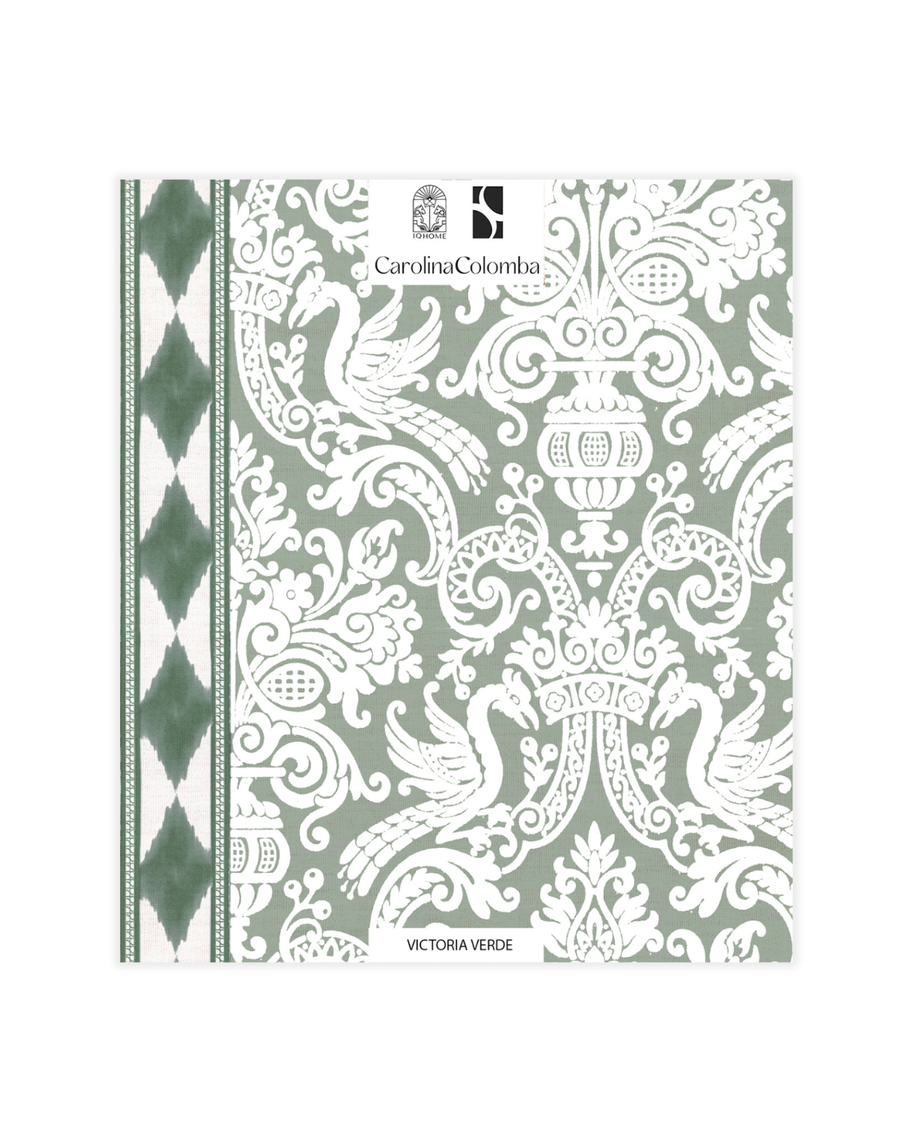 VICTORIA VERDE es un papel pintado, patrón de estilo palaciego en tono verde oliva, en el que conviven guardas étnicas con una trama de leones que tejen un figura y forma sofisticada, moderna y atemporal a la vez, diseño en colaboración con Carolina Colomba.