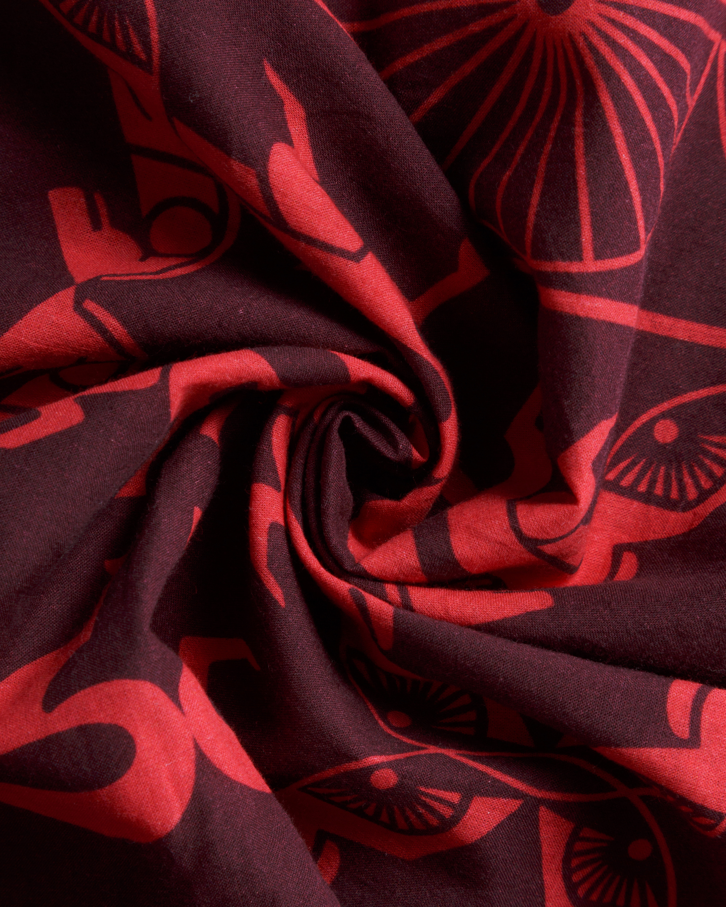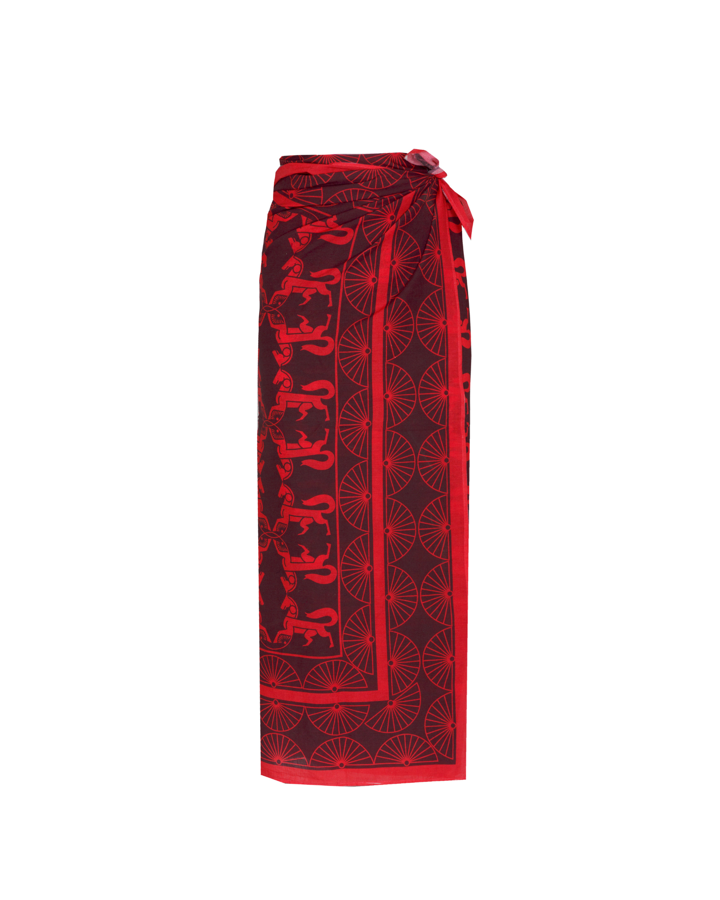 100% cotton pareo with a geometric IQ print design in burgundy, enhanced with subtle red details that add a modern and feminine touch. A fresh, stylish pareo ideal for sunny days. Lightweight and soft to the touch, this pareo is perfect for multiple styling options.