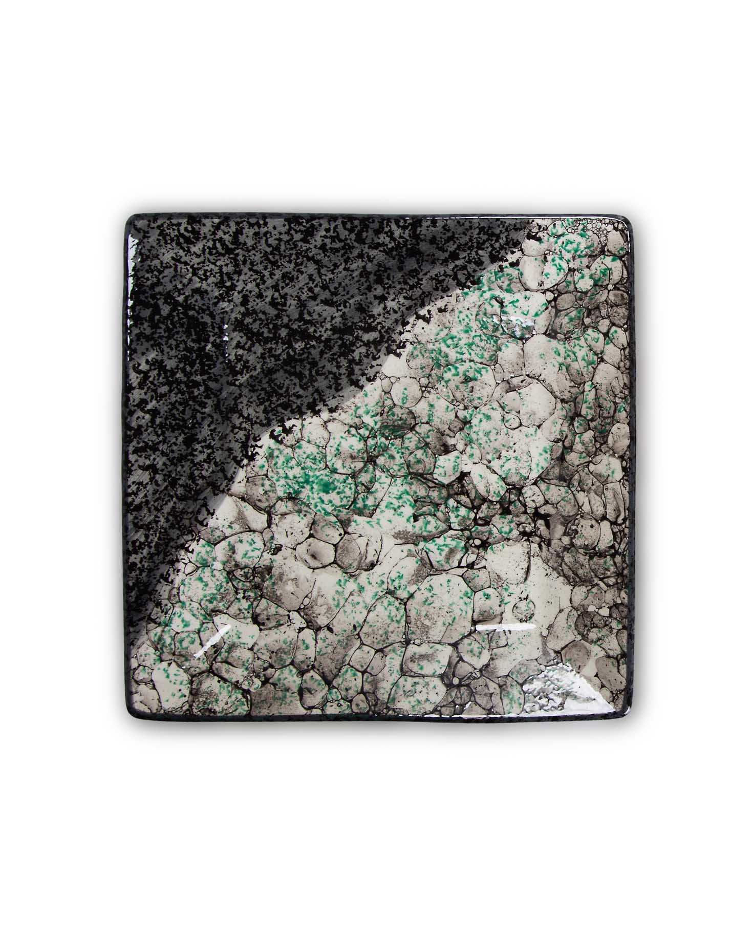Square aqua ceramic plate. Made in Spain. Ideal for appetizers.