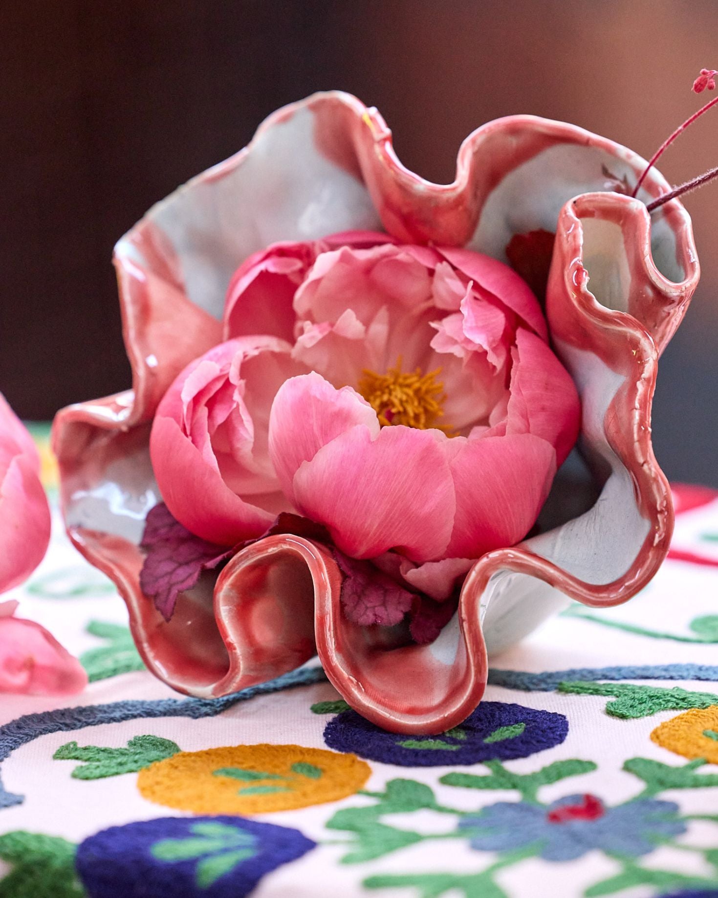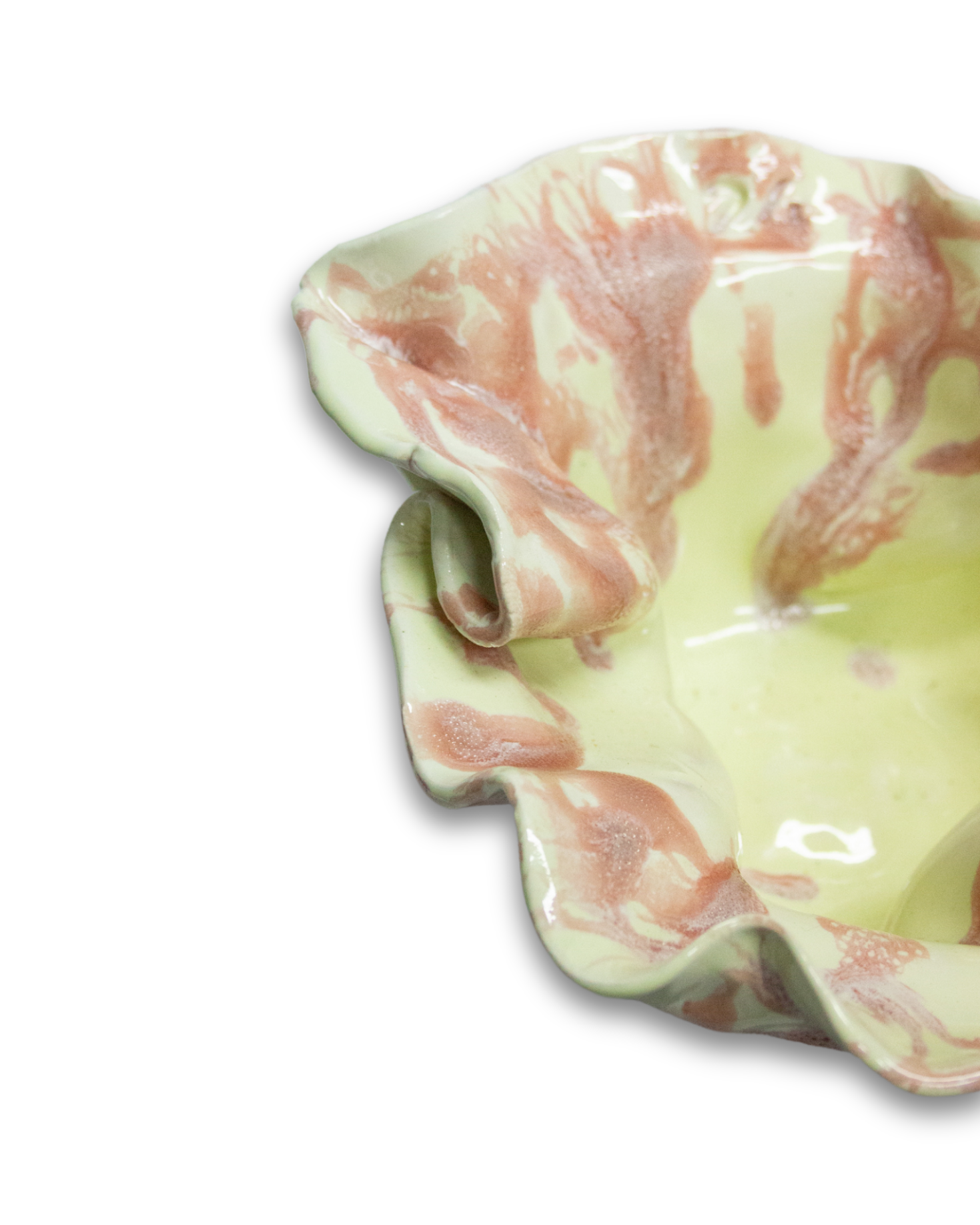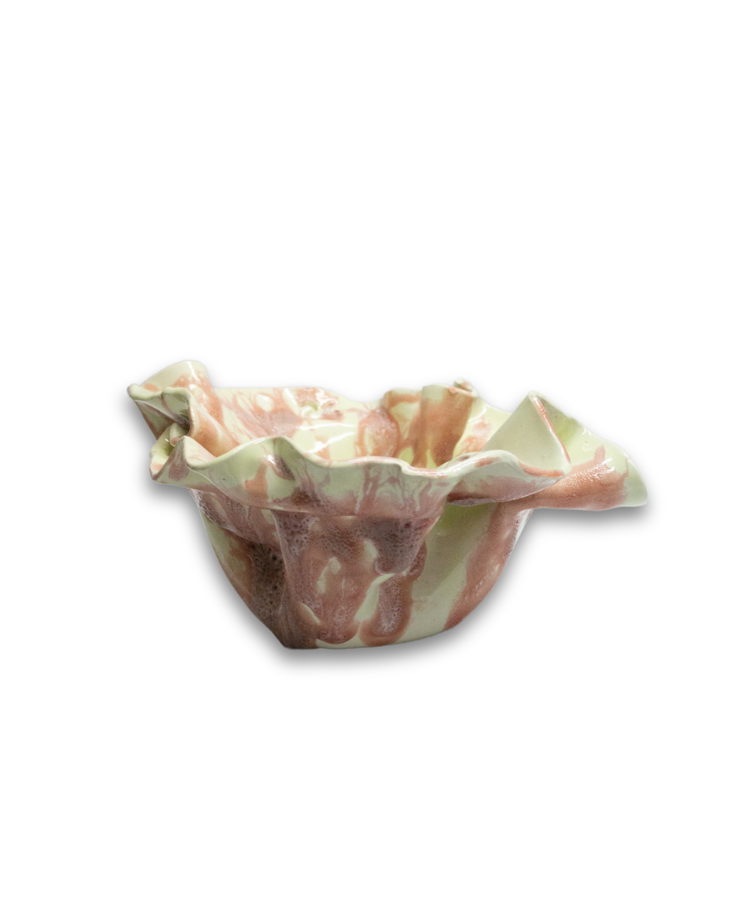 Medium bowl with irregular edges handmade in artisanal ceramic in pink and yellow tones. Being a handcrafted product, each piece is unique and different.