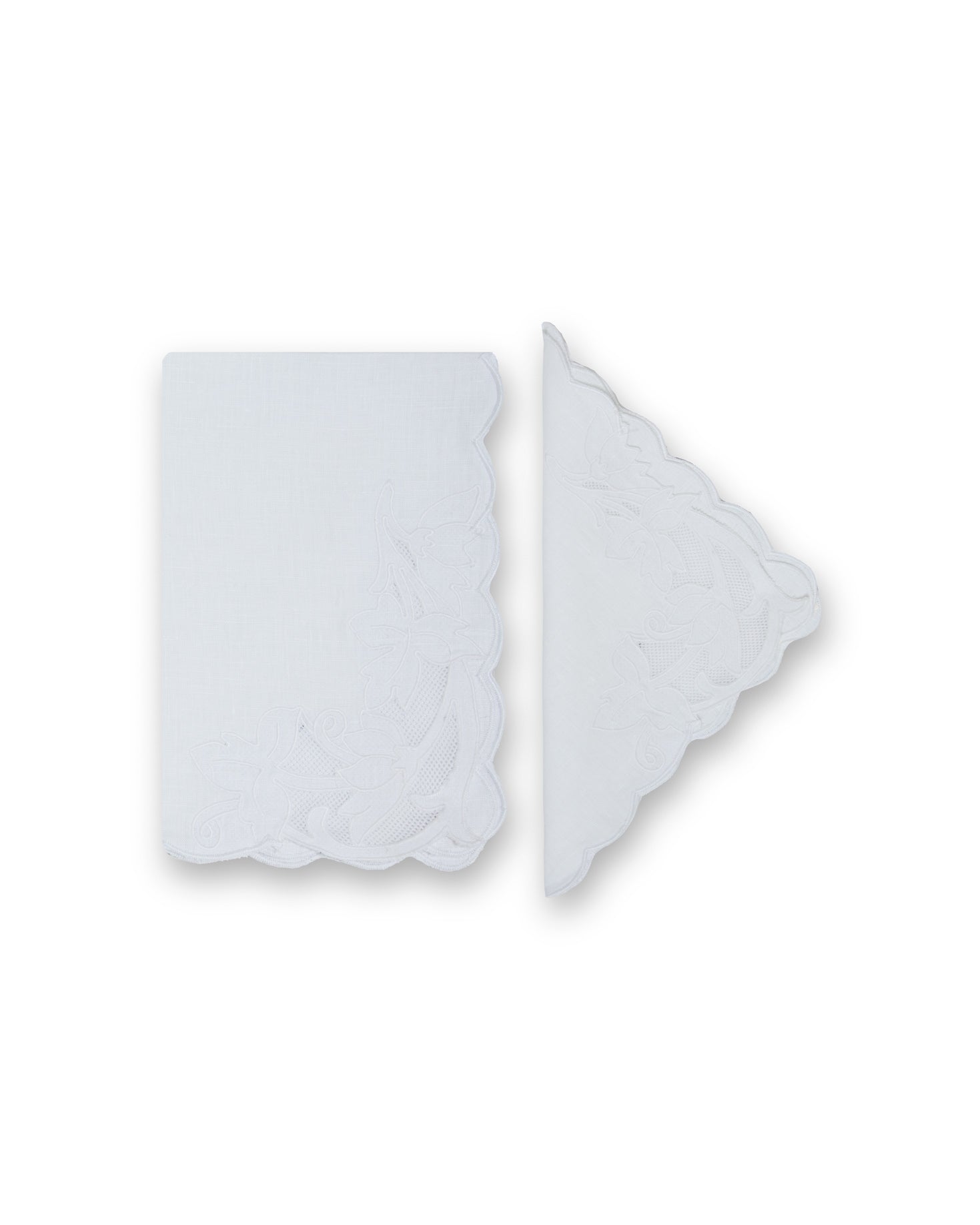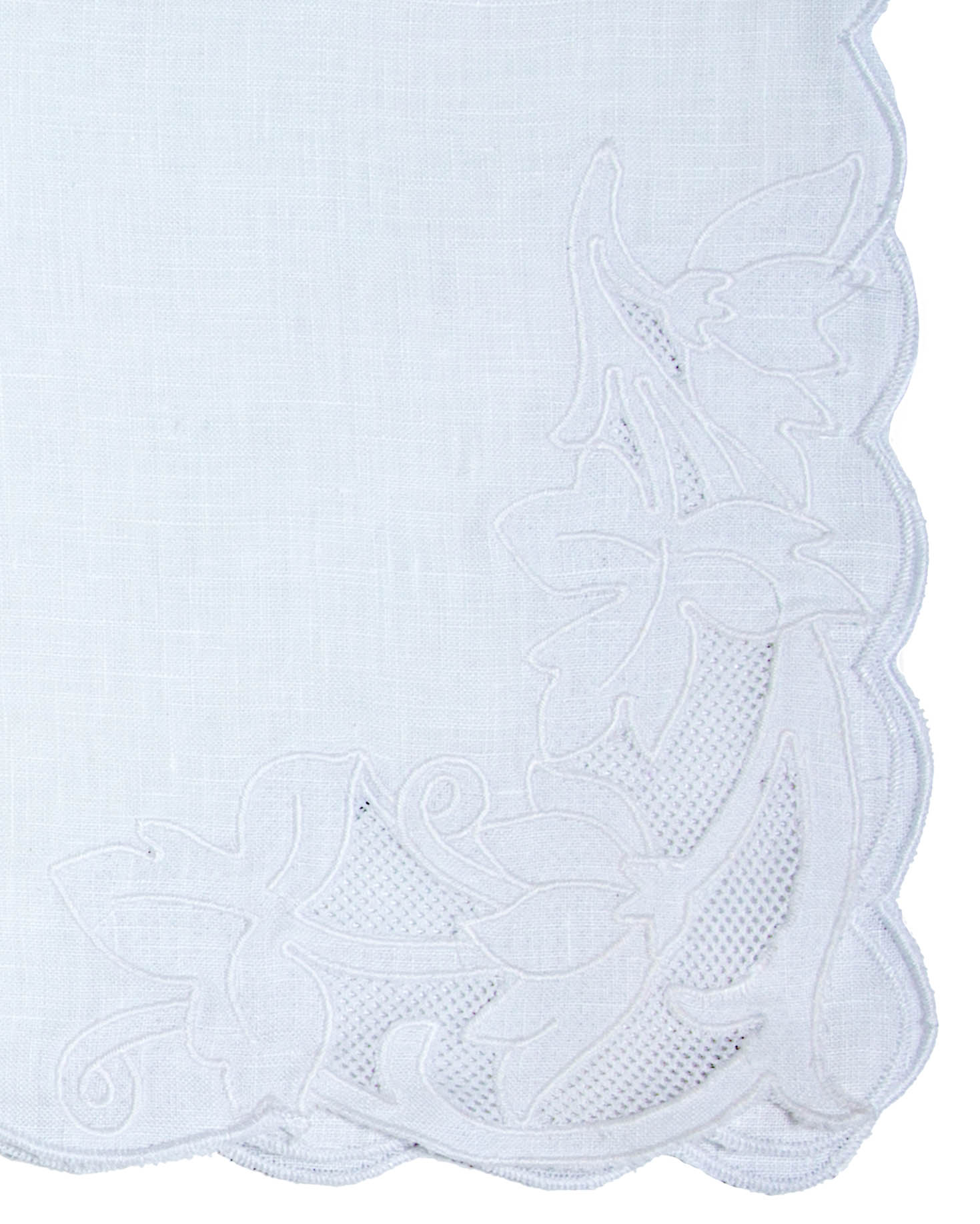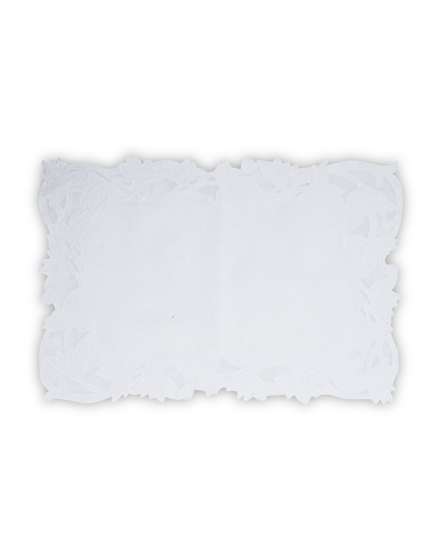 Set of one placemat and one napkin. Made of 100% linen, in white with floral embroidery.