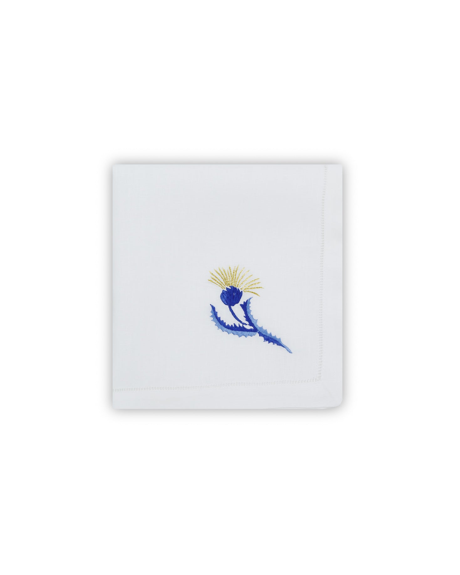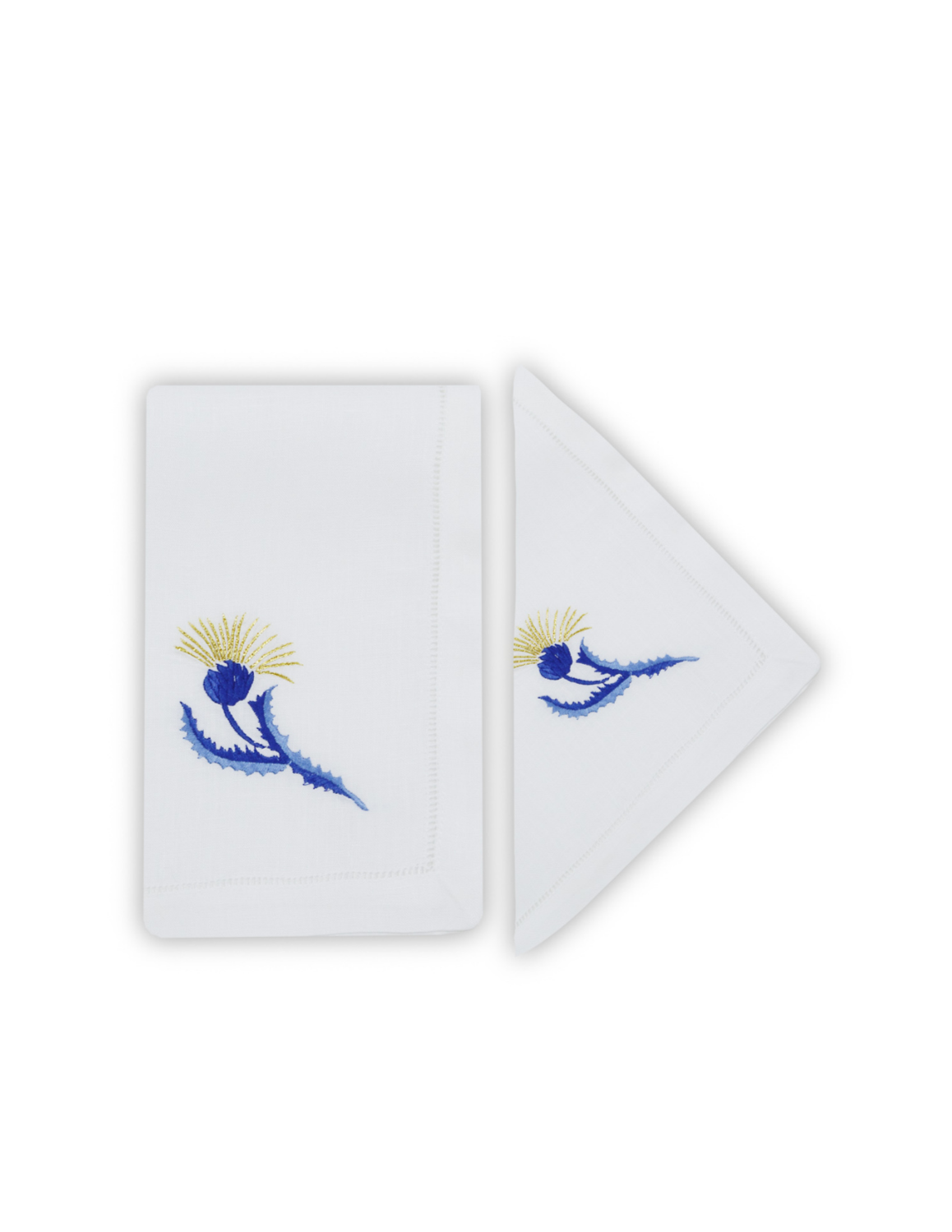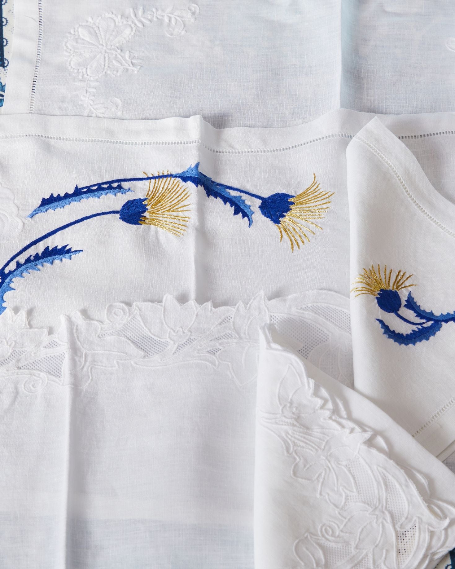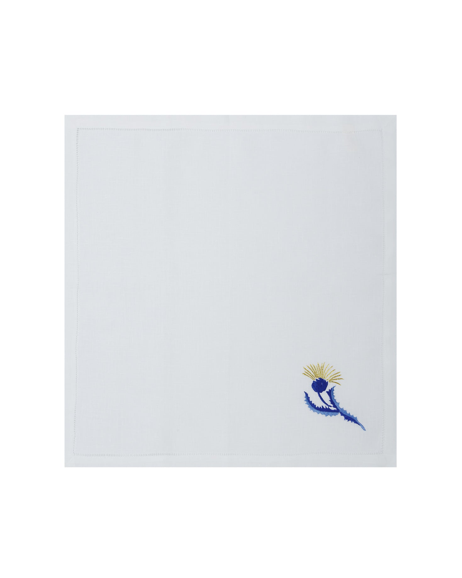 Placemat and napkin set made of 100% linen. White placemat with blue floral embroidery. As this is a handcrafted product, there may be variations in each unit.