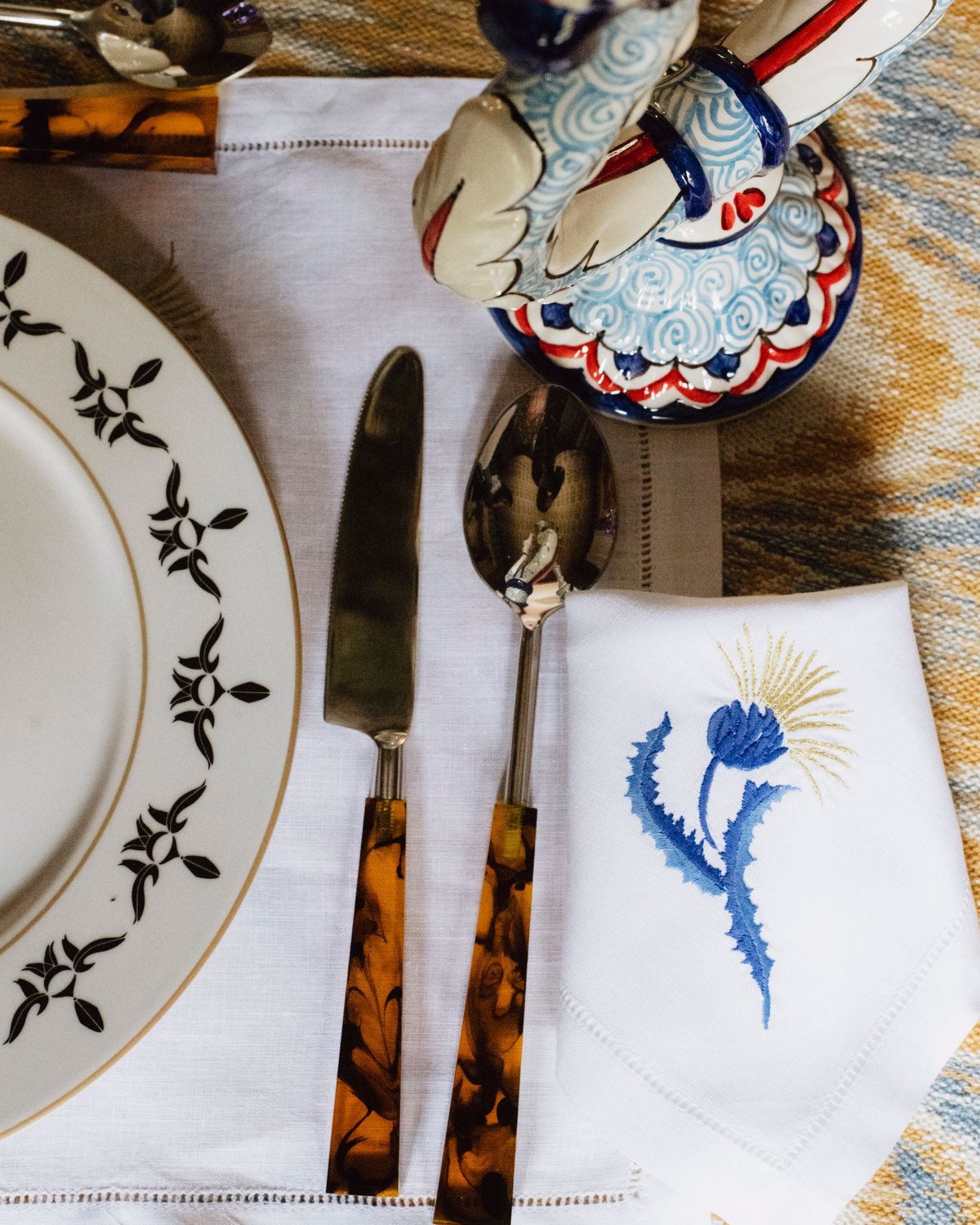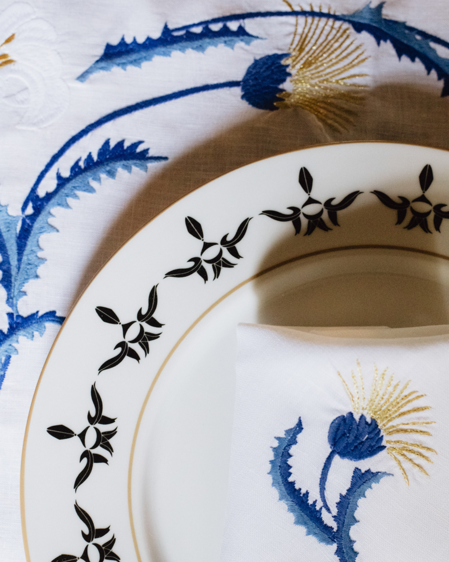 INDIVIDUAL AND LINEN NAPKIN WITH BLUE EMBROIDERY