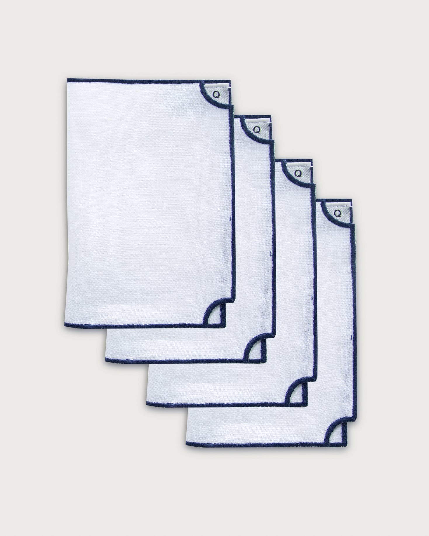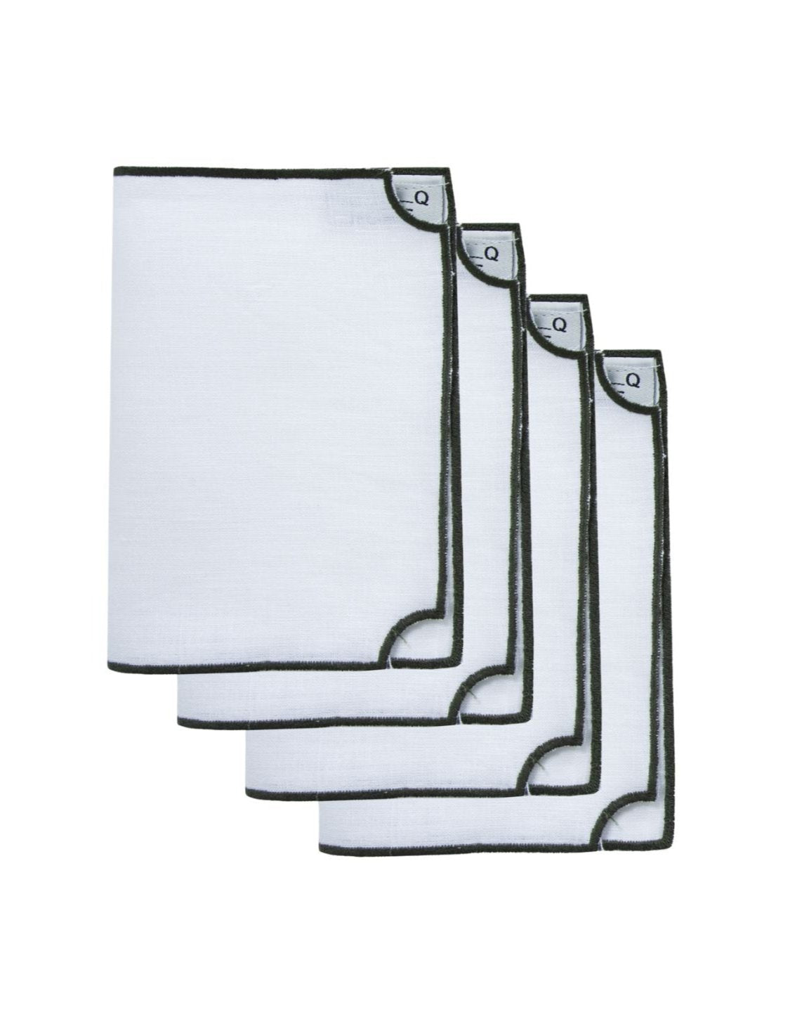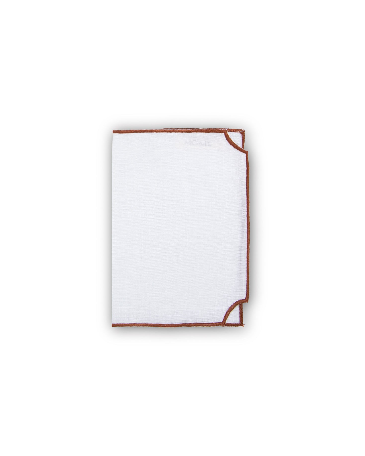 Pack of 4 cocktail napkins in 100% linen in white. With embroidery in brown, blue, green, burgundy and black.