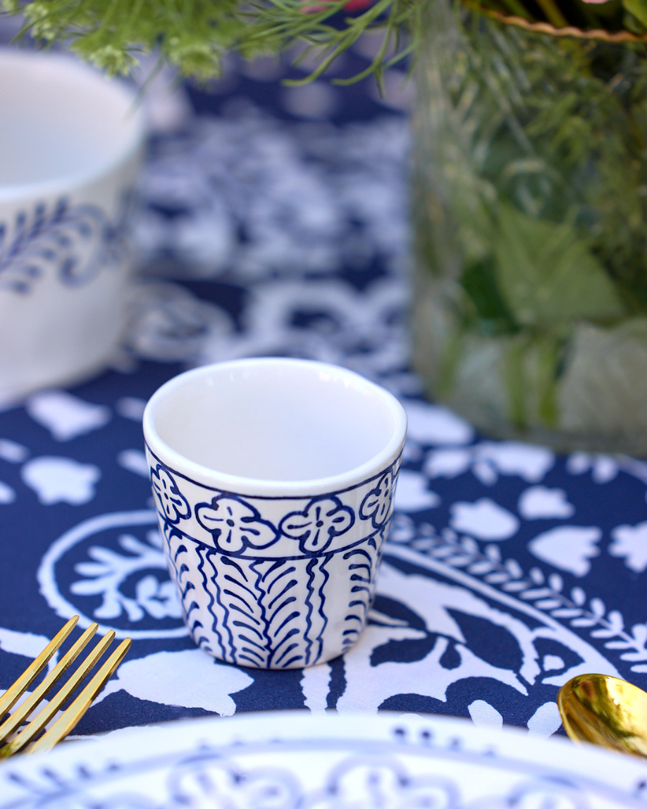 Espresso cup made of ceramic hand-painted in blue with natural details.