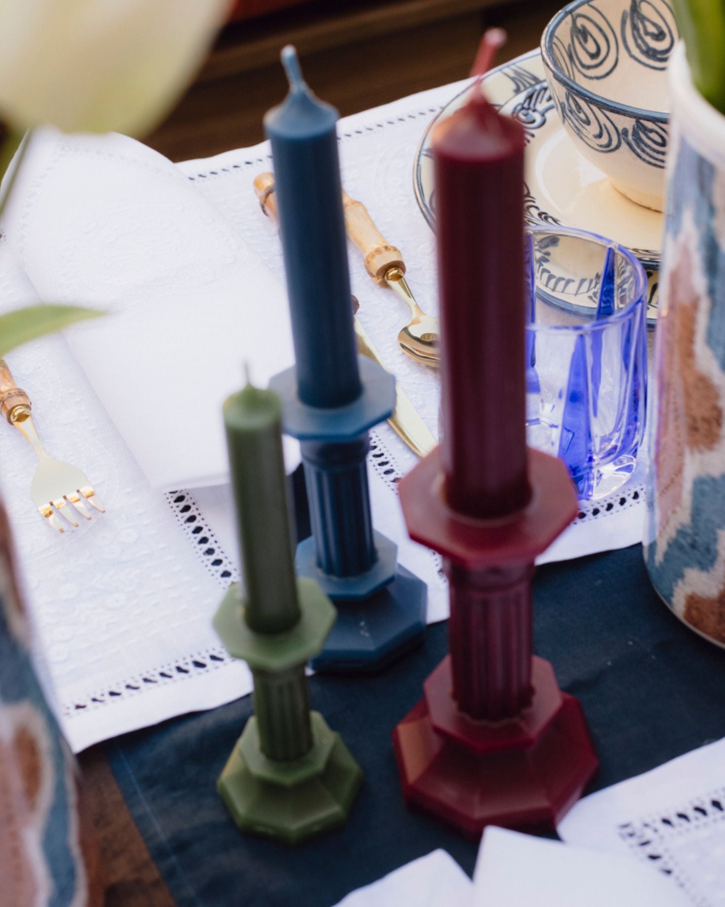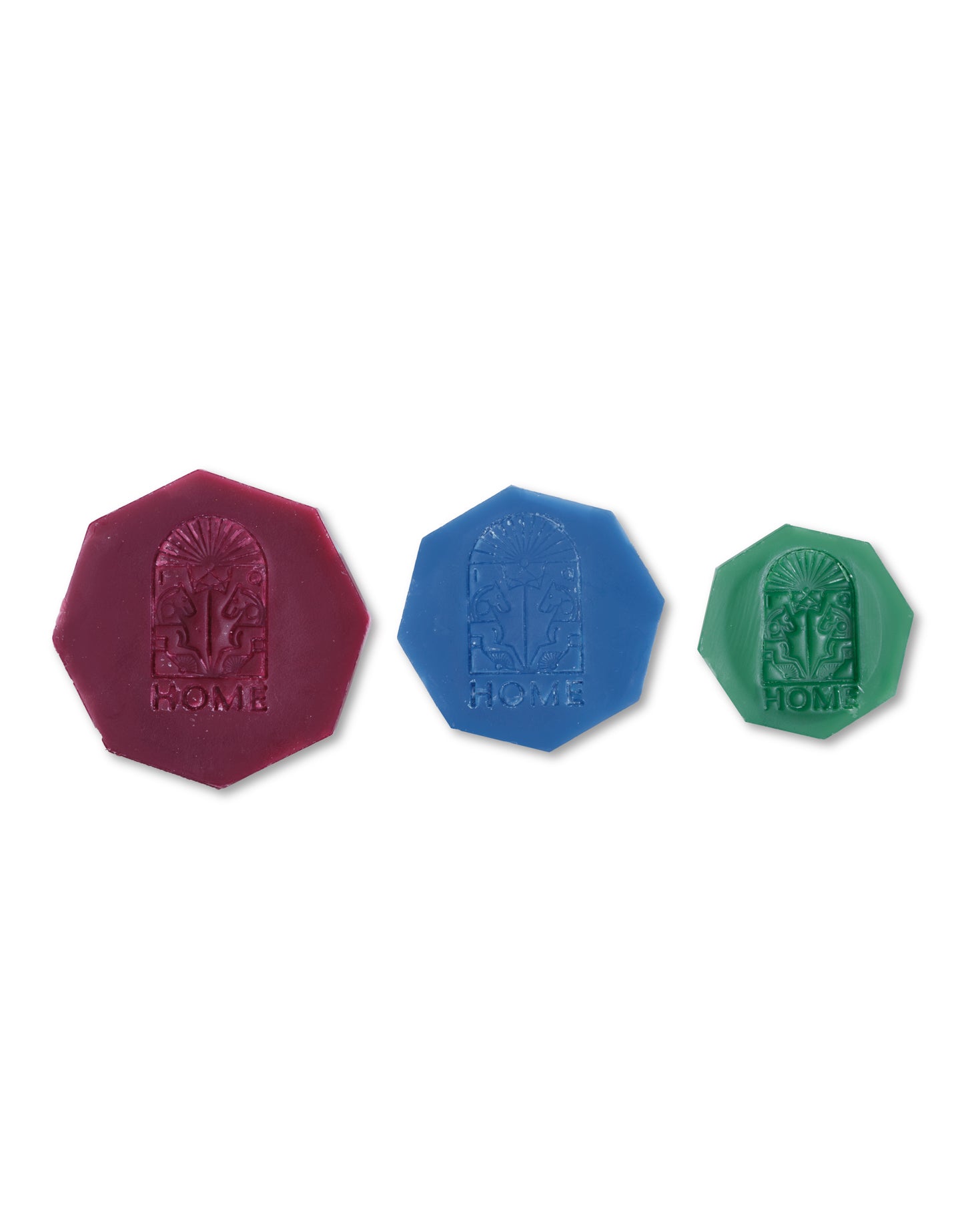 Set of three scented candles in different shades with the IQ Home logo engraved on the bottom.