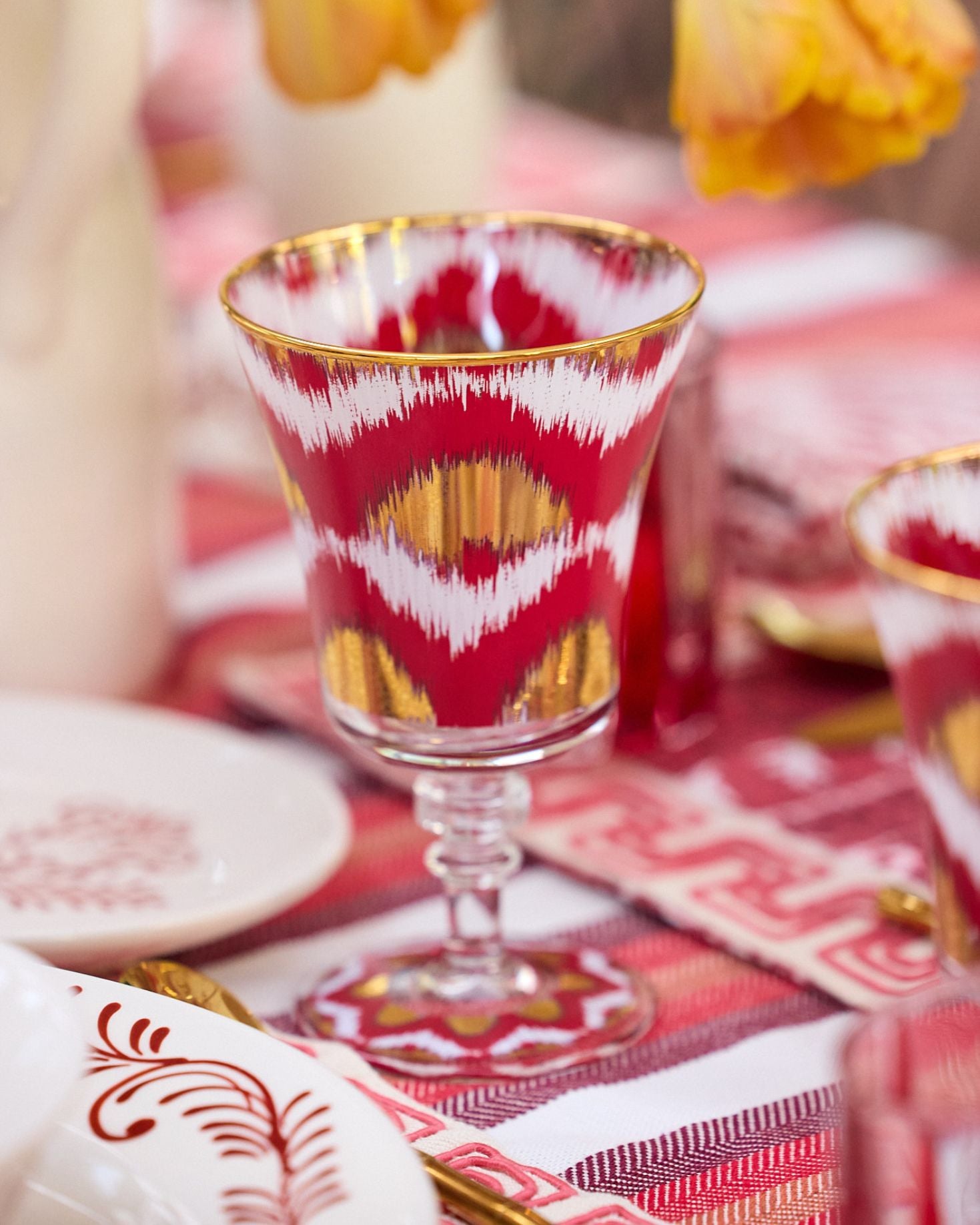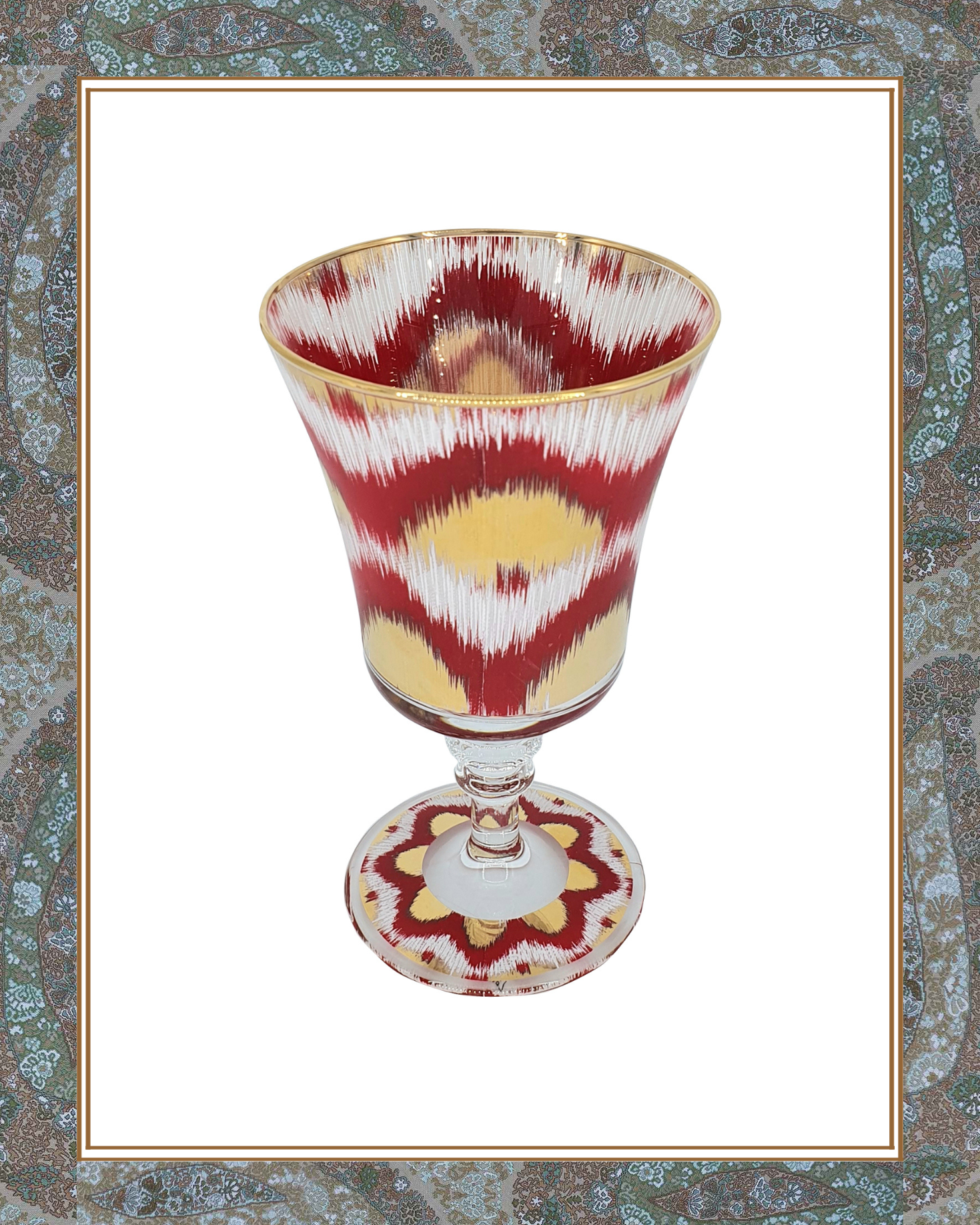 Copa de cristal etnia en color burdeos y blanco con toques dorados.