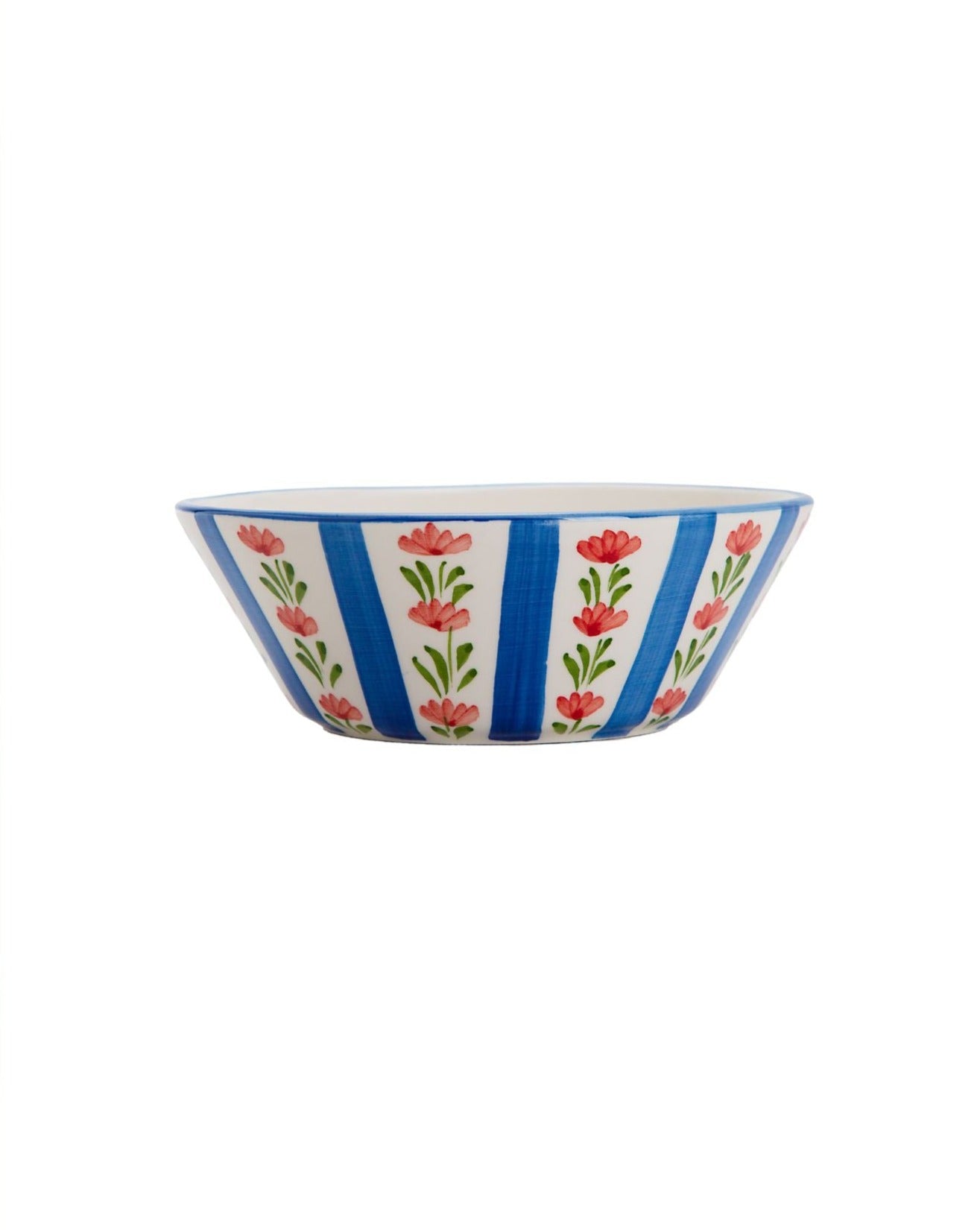 Cuenco hecho en cerámica pintado a mano en colores azul, rojo y verde.