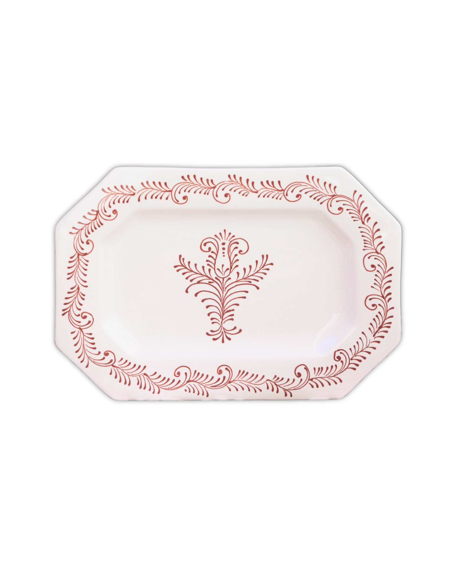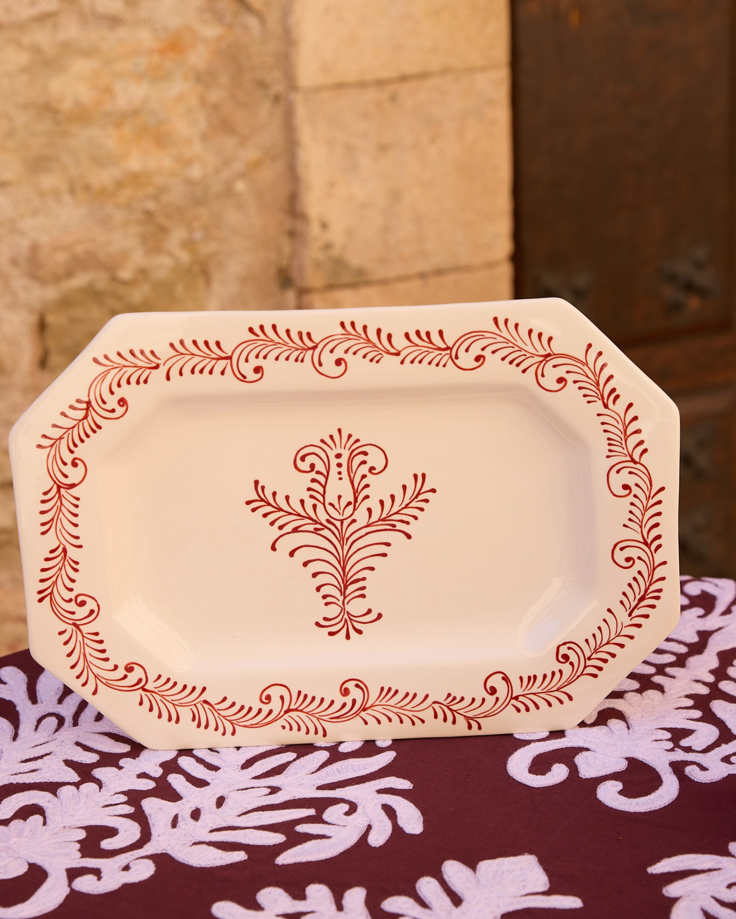 Fuente de aperitivo hecha en cerámica pintada a mano en color terracota.