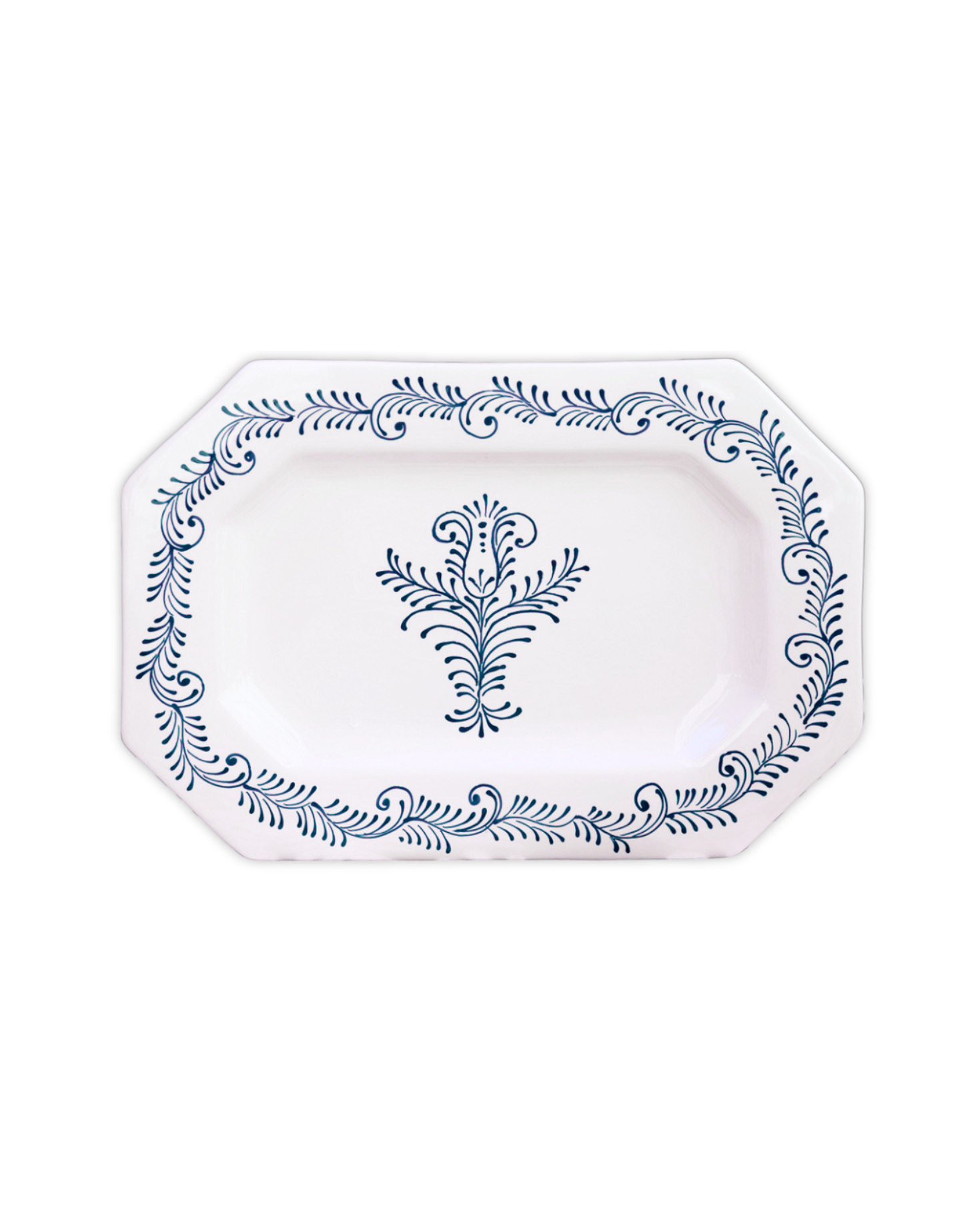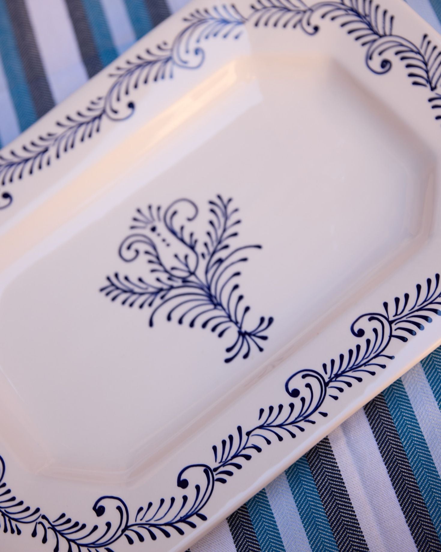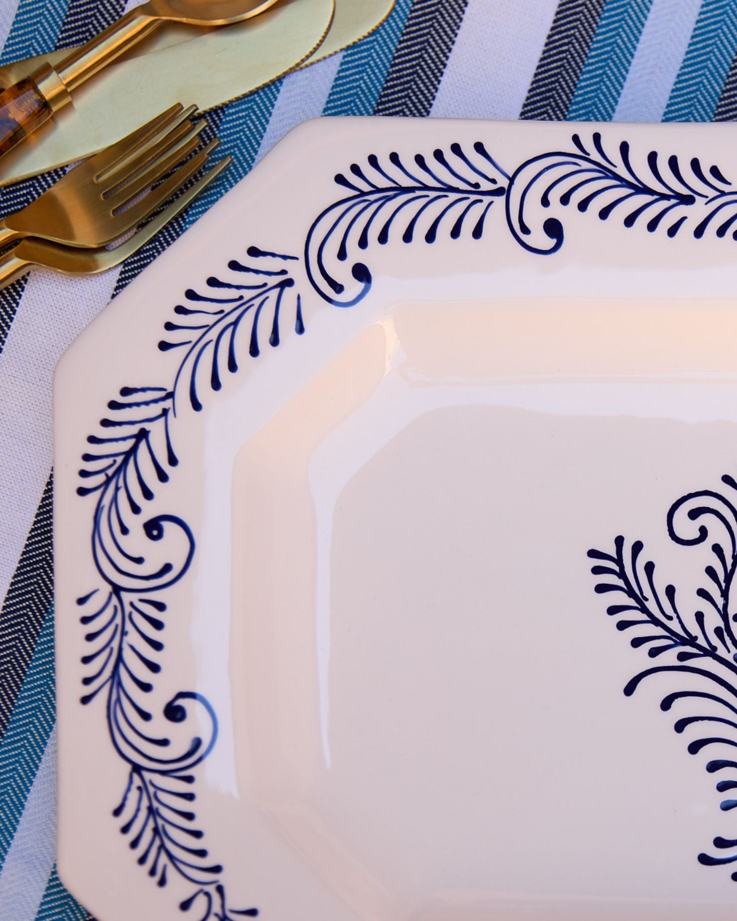 Fuente de aperitivo hecha en cerámica pintada a mano en color azul.