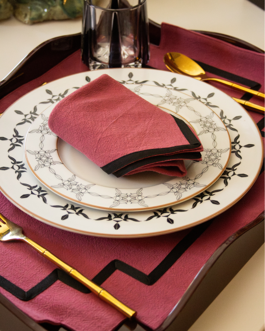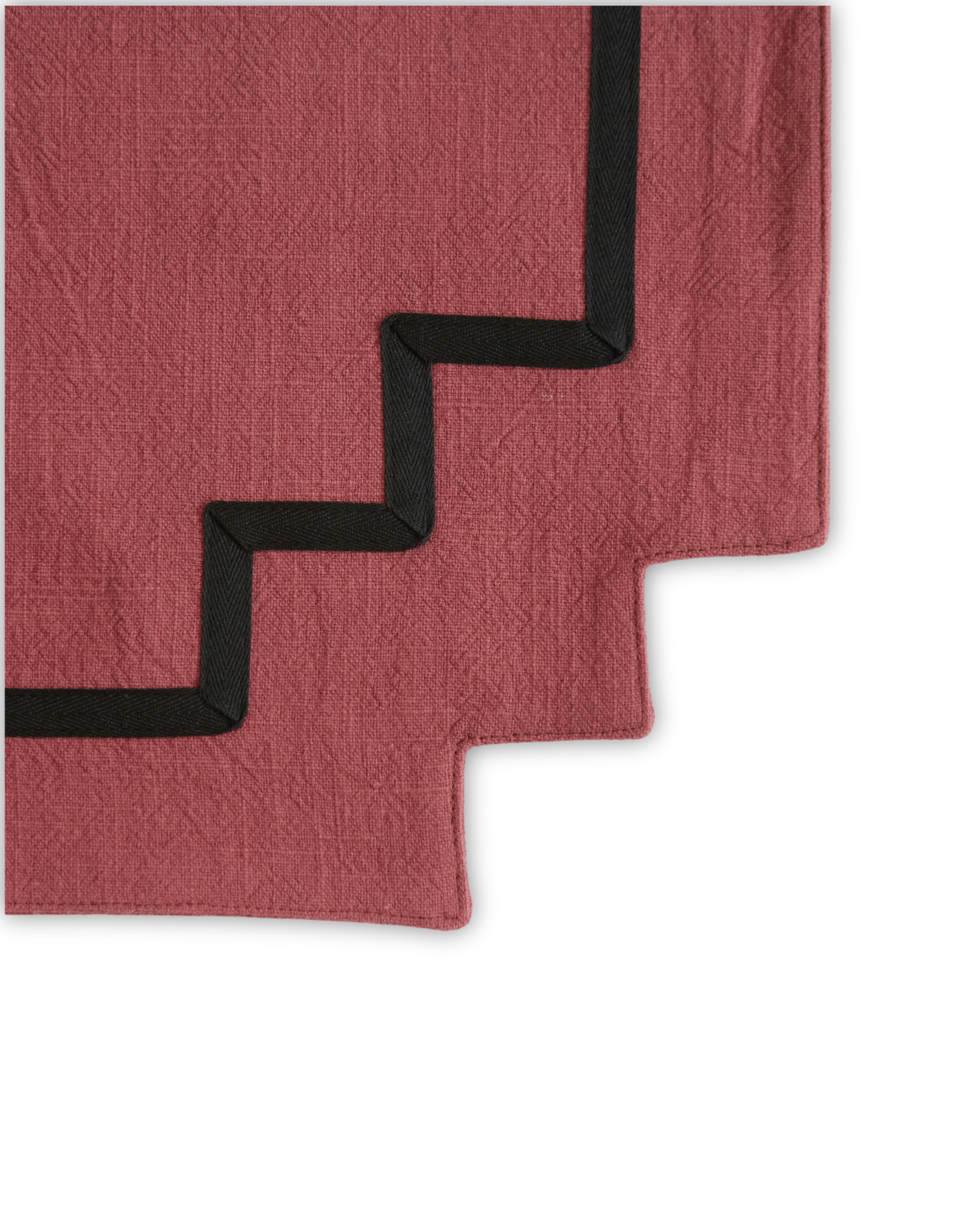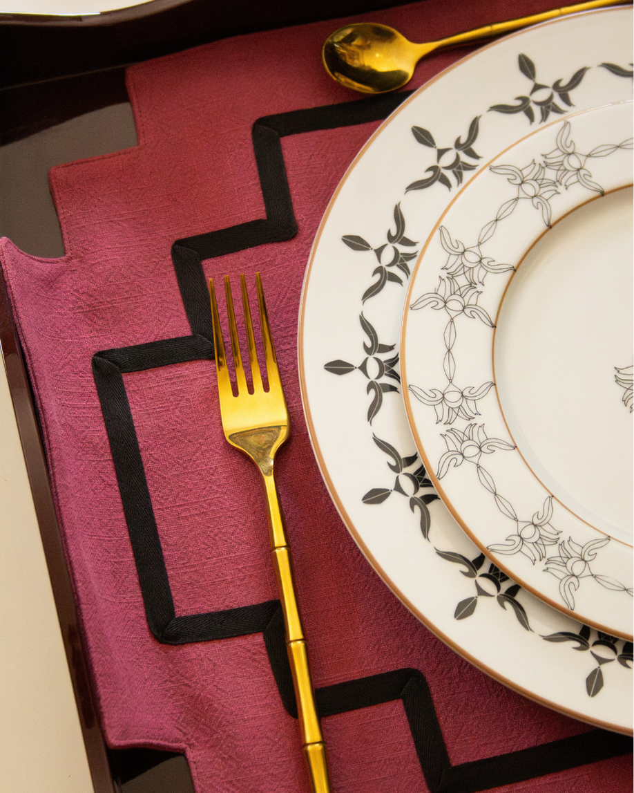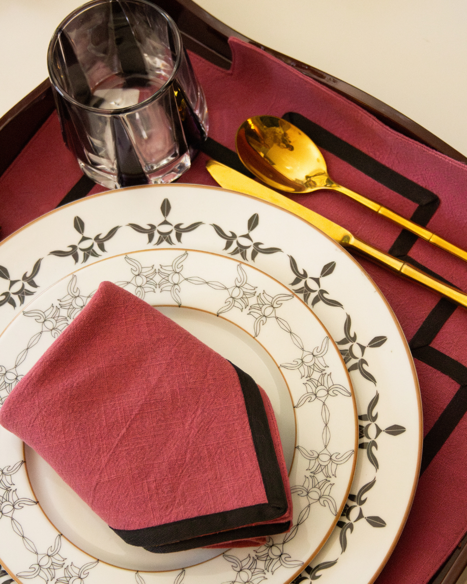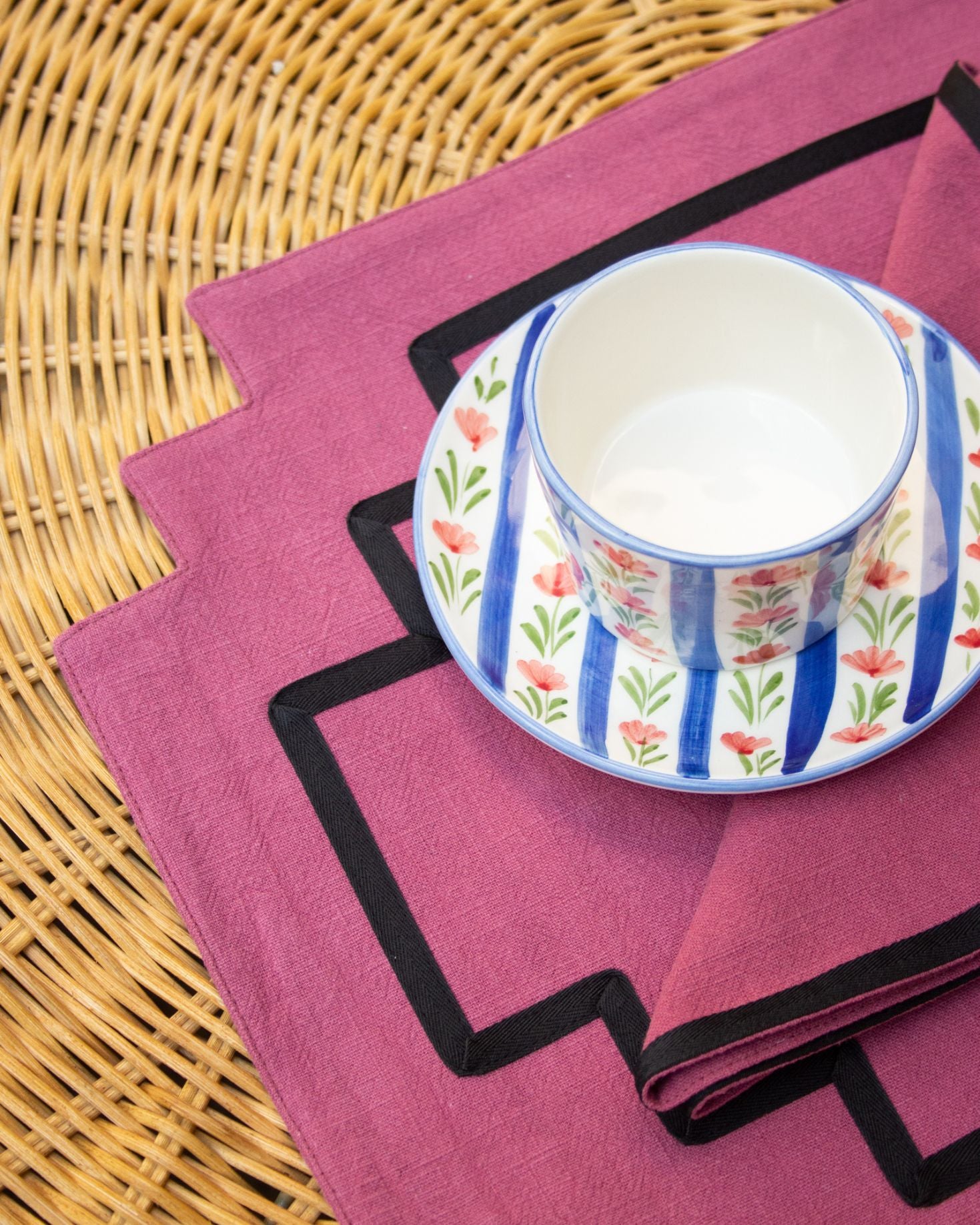 Set individual y servilleta con diseño característico de IQ y detalles en negro. Disponible en color rosa, azul marino y verde. Colección especial "IQ se viste de rosa".