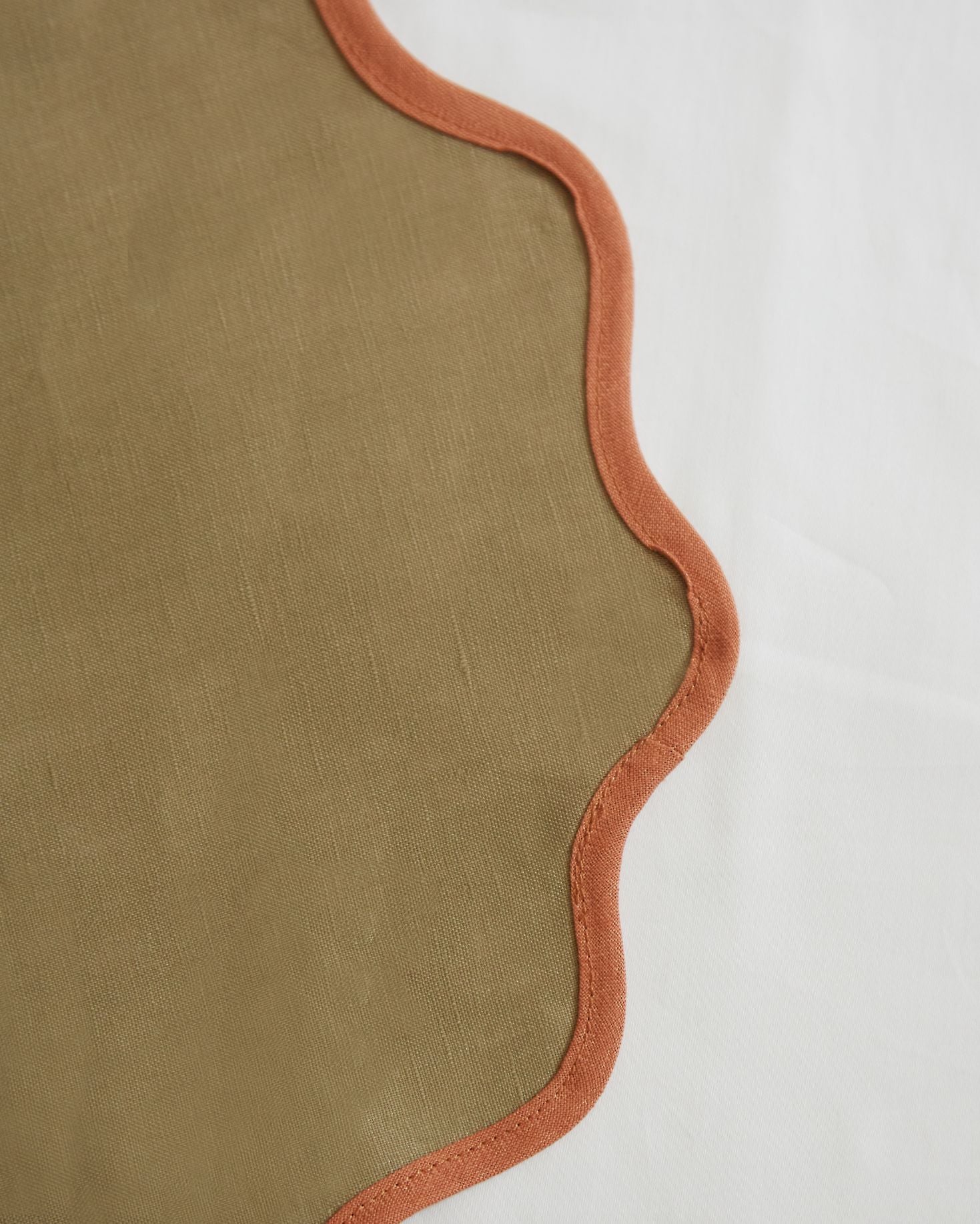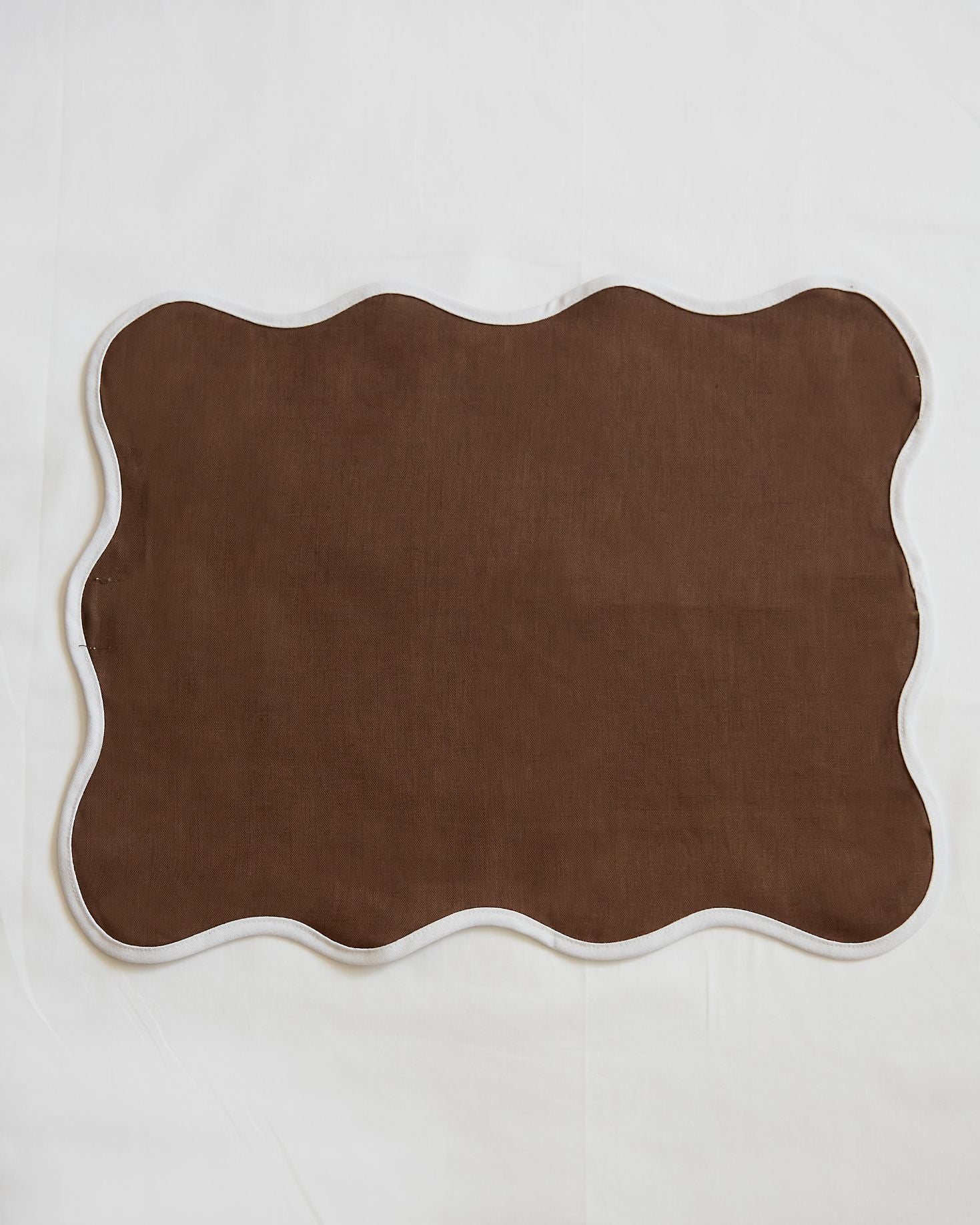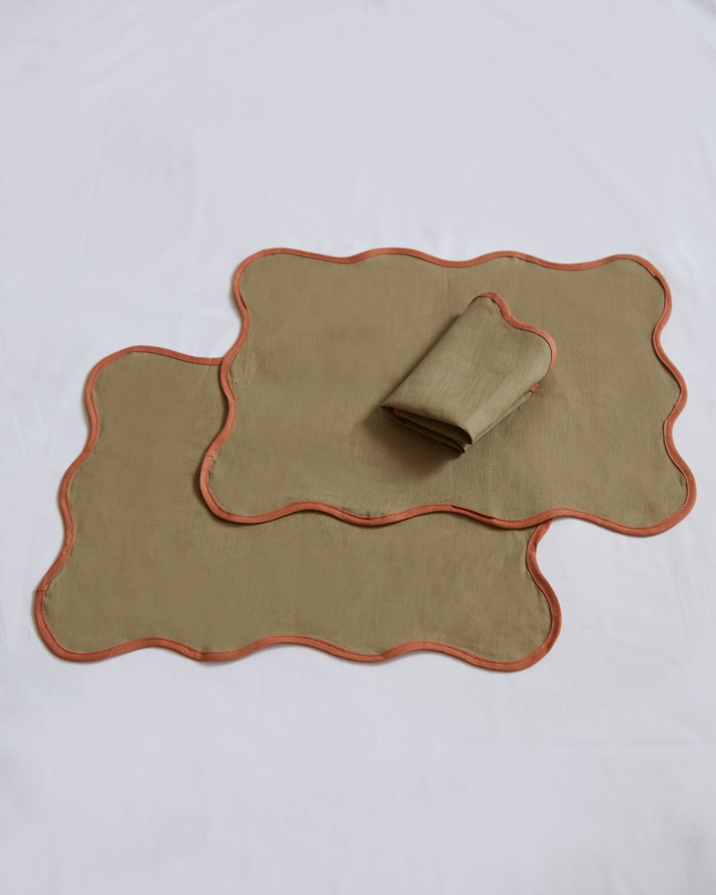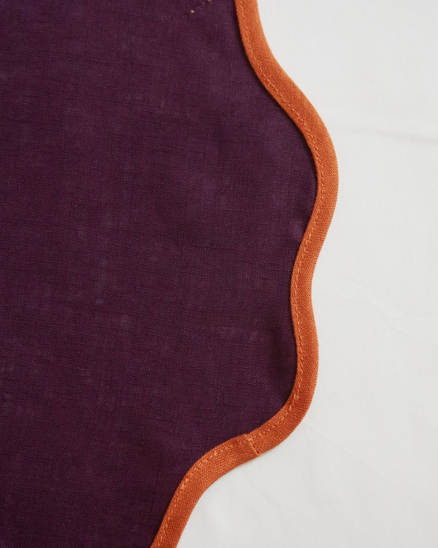 Set individual rectangular y servilleta redonda ondulada con ribete festoneado, disponibles en una amplia variedad de colores.
