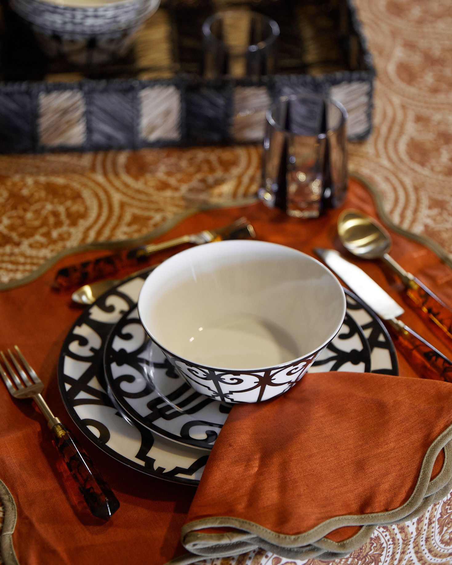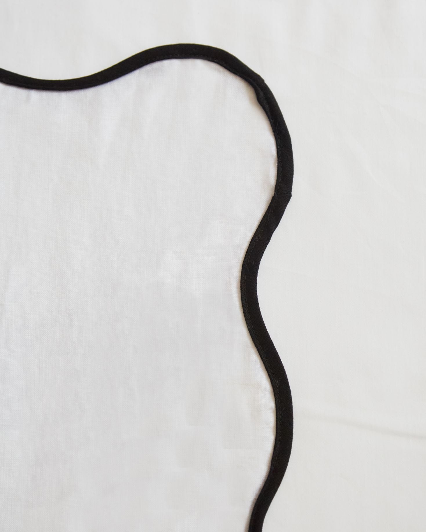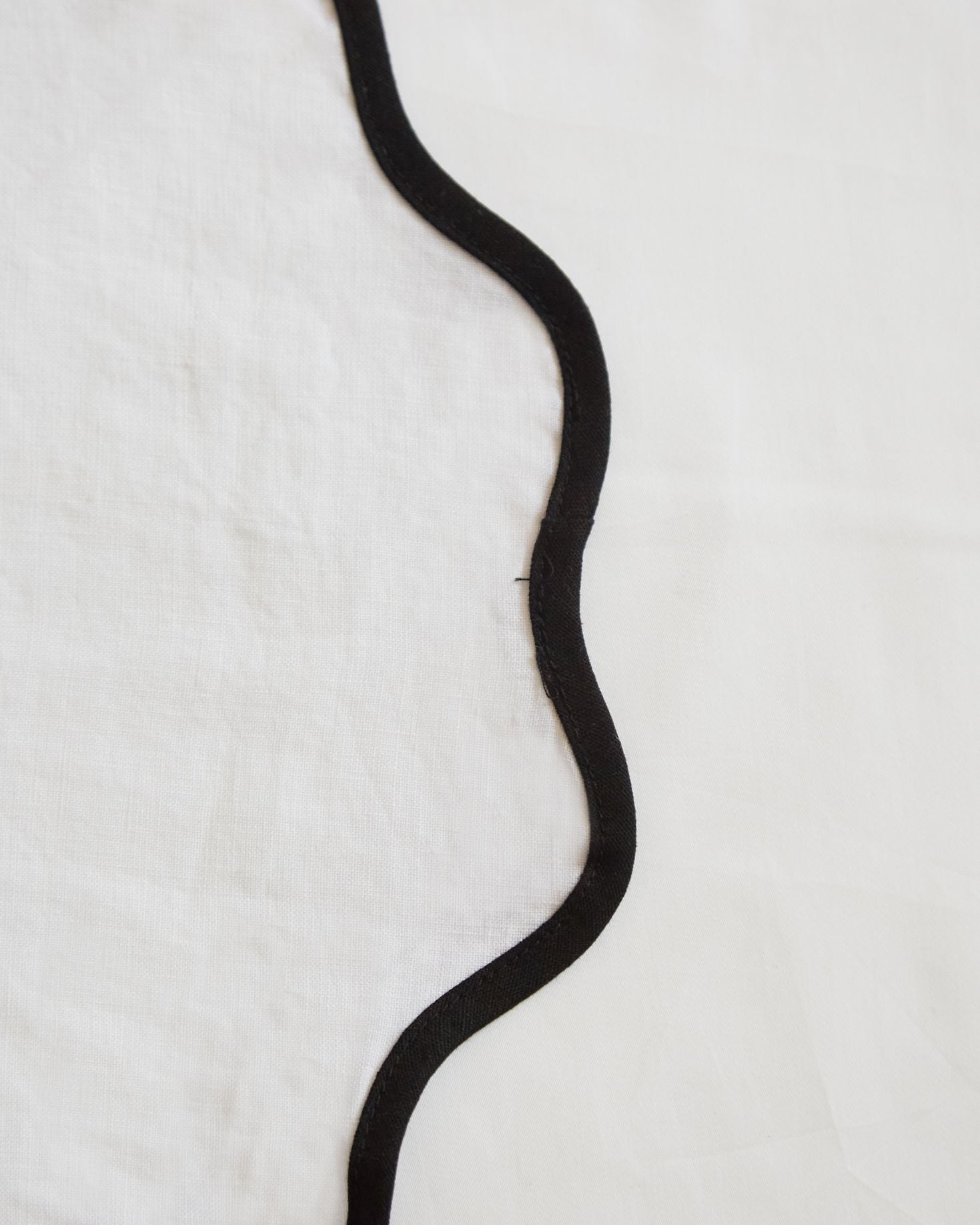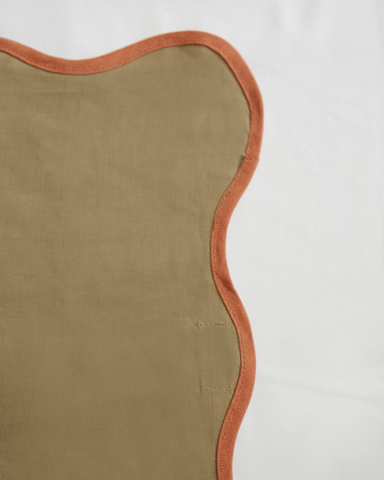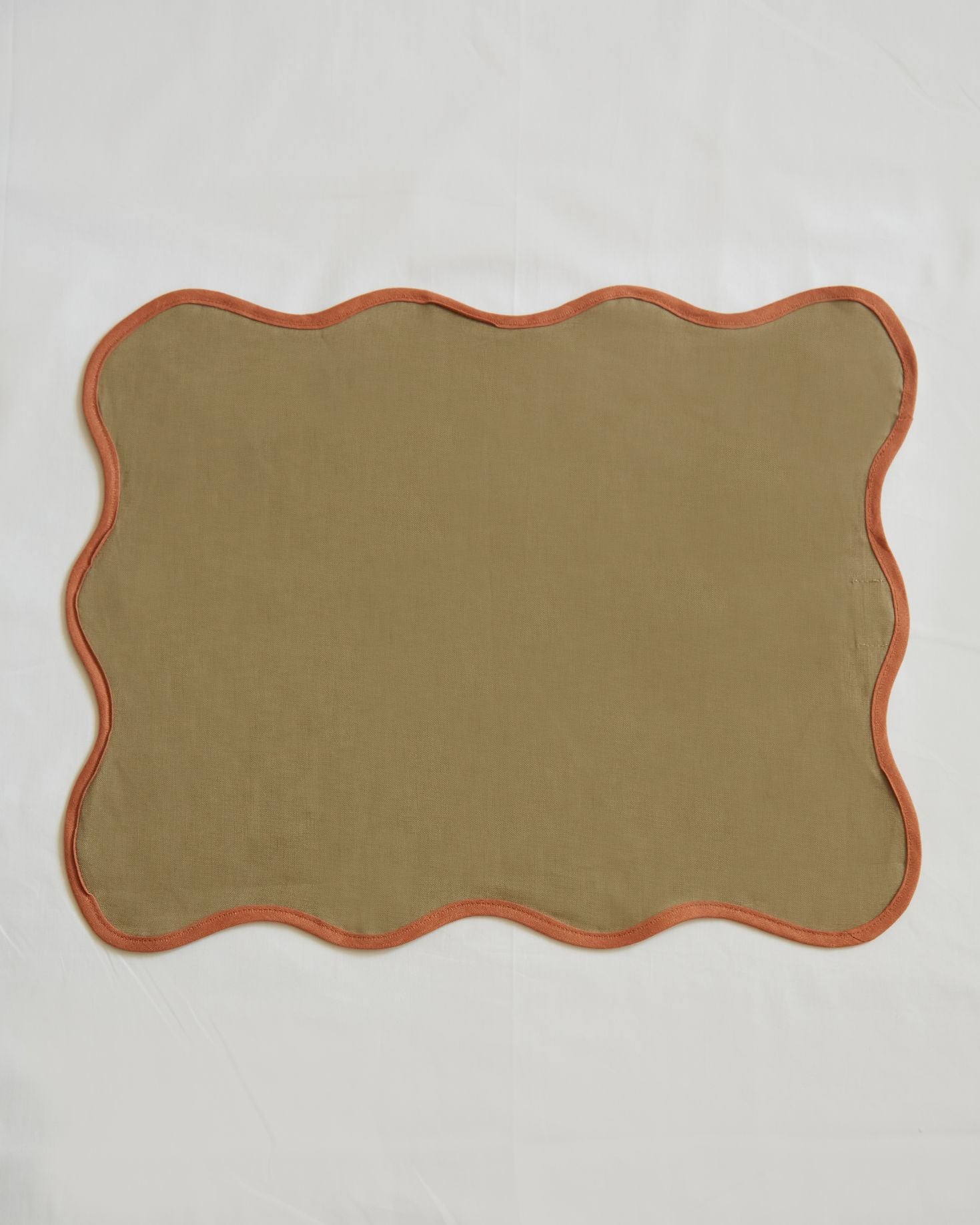 Set individual rectangular y servilleta redonda ondulada con ribete festoneado, disponibles en una amplia variedad de colores.