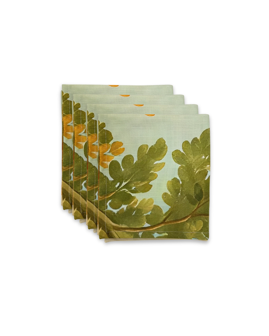 Pack de 4 servilletas cuadradas de hilo con paisaje de Goya. Diseño exclusivo para nuestro desfile del V aniversario.