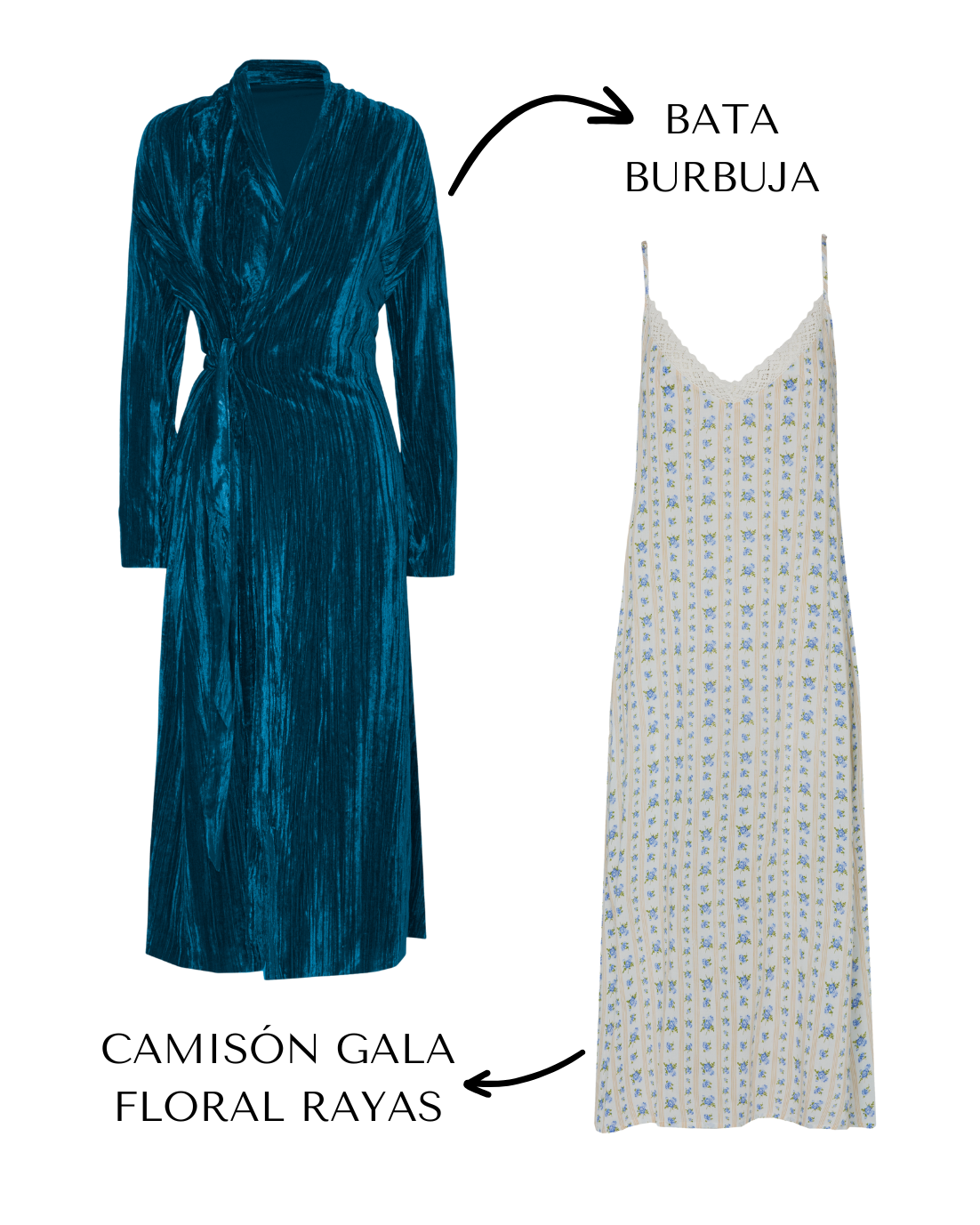 PACK BATA BURBUJA Y CAMISÓN GALA FLORAL RAYAS