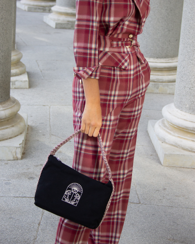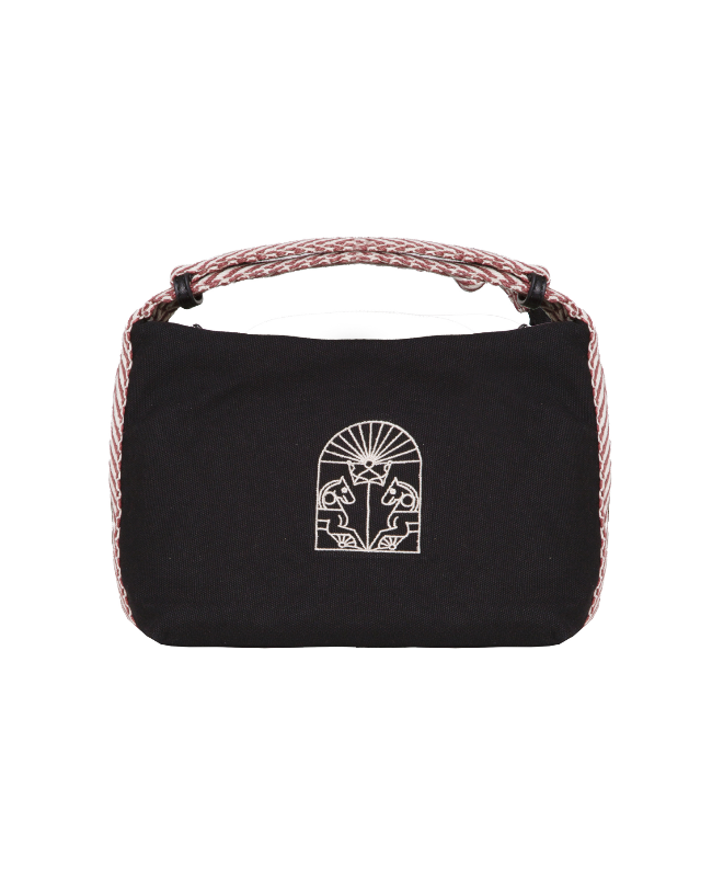 - Neceser con asa en color negro con cremallera y detalle de greca beige y burdeos. Logo bordado en color beige. Disponible en color verde y negro.