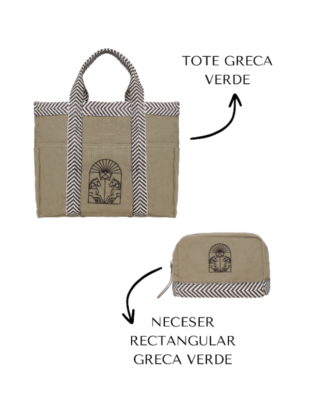 PACK TOTE Y NECESER RECTANGULAR GRECA (verde)