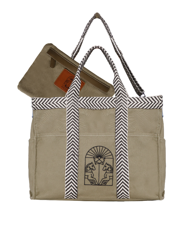 Pack de Tote y Neceser rectangular con greca en color verde.
