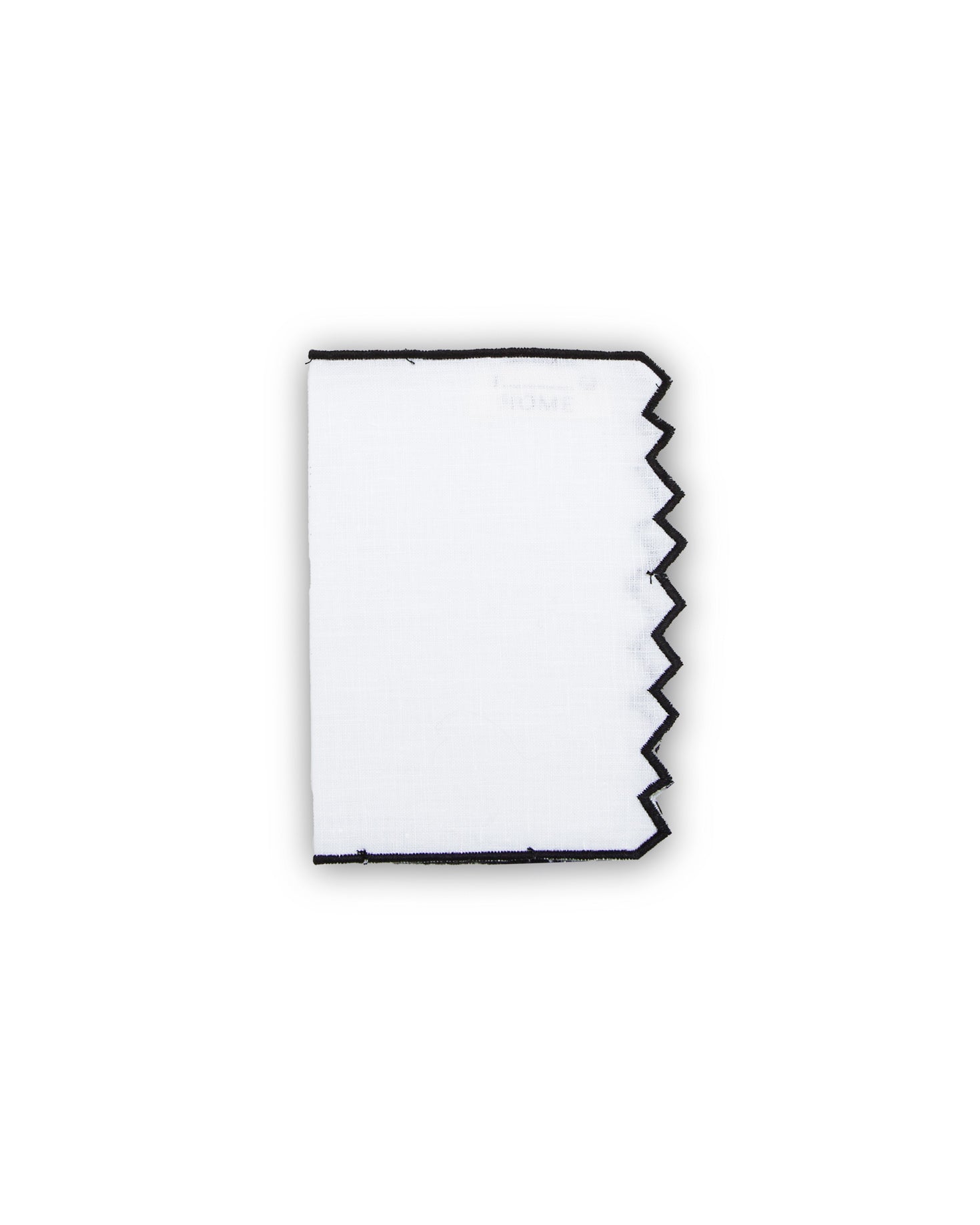 Pack de 4 servilletas de cocktail en lino 100% en color blanco. Con bordados en color negro y burdeos.