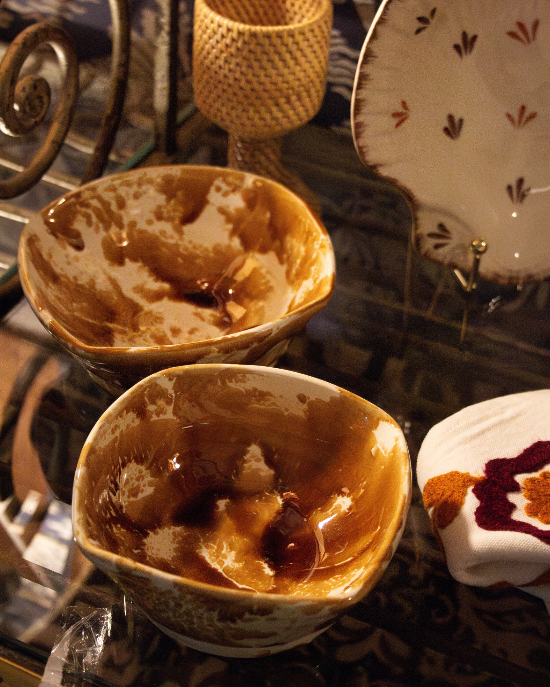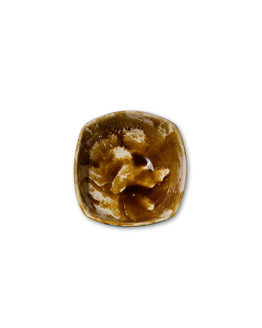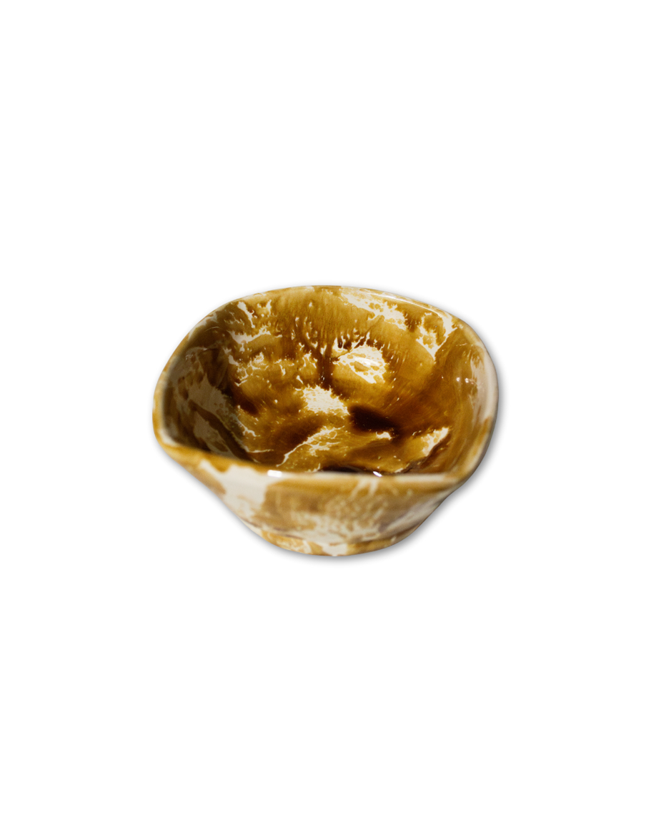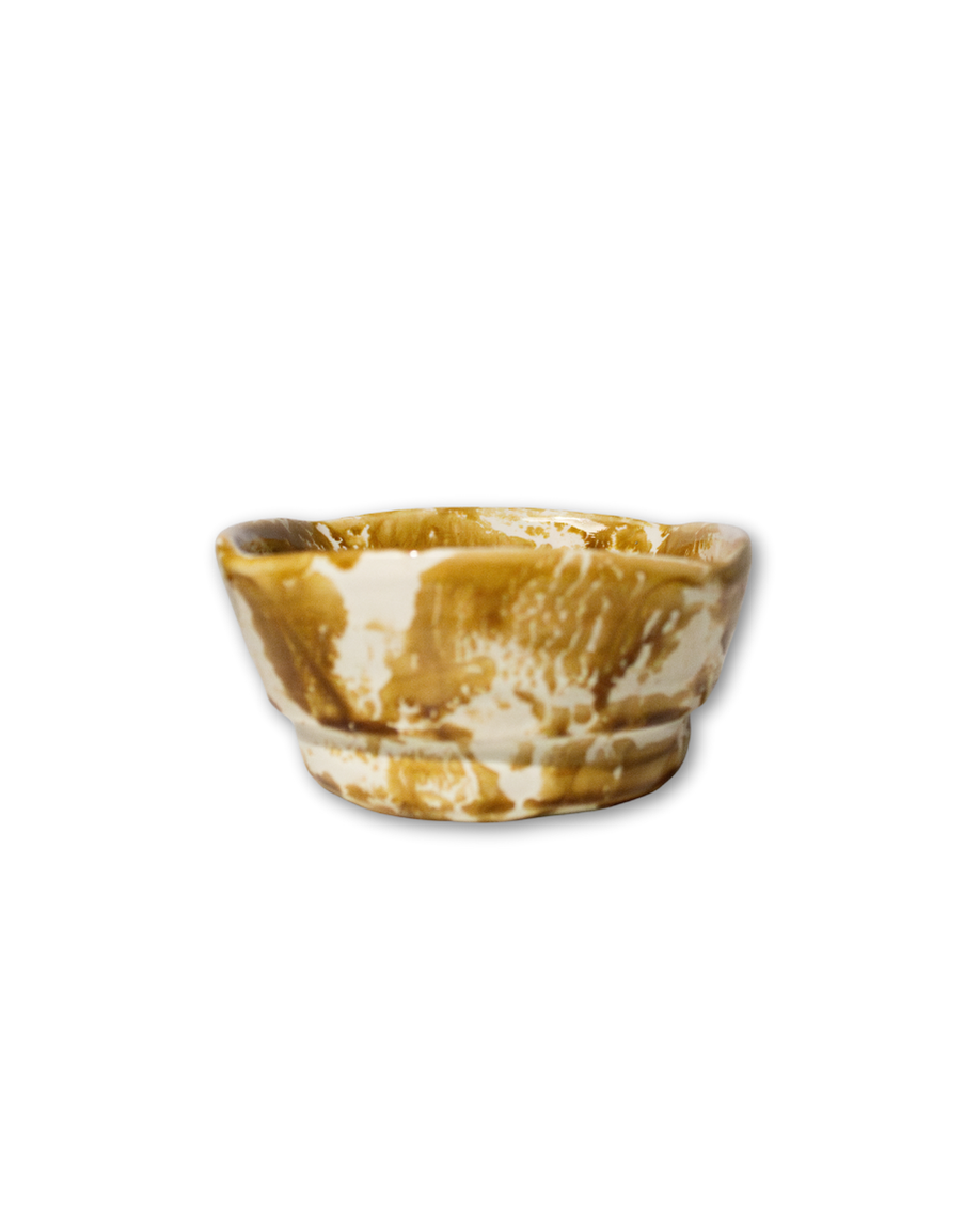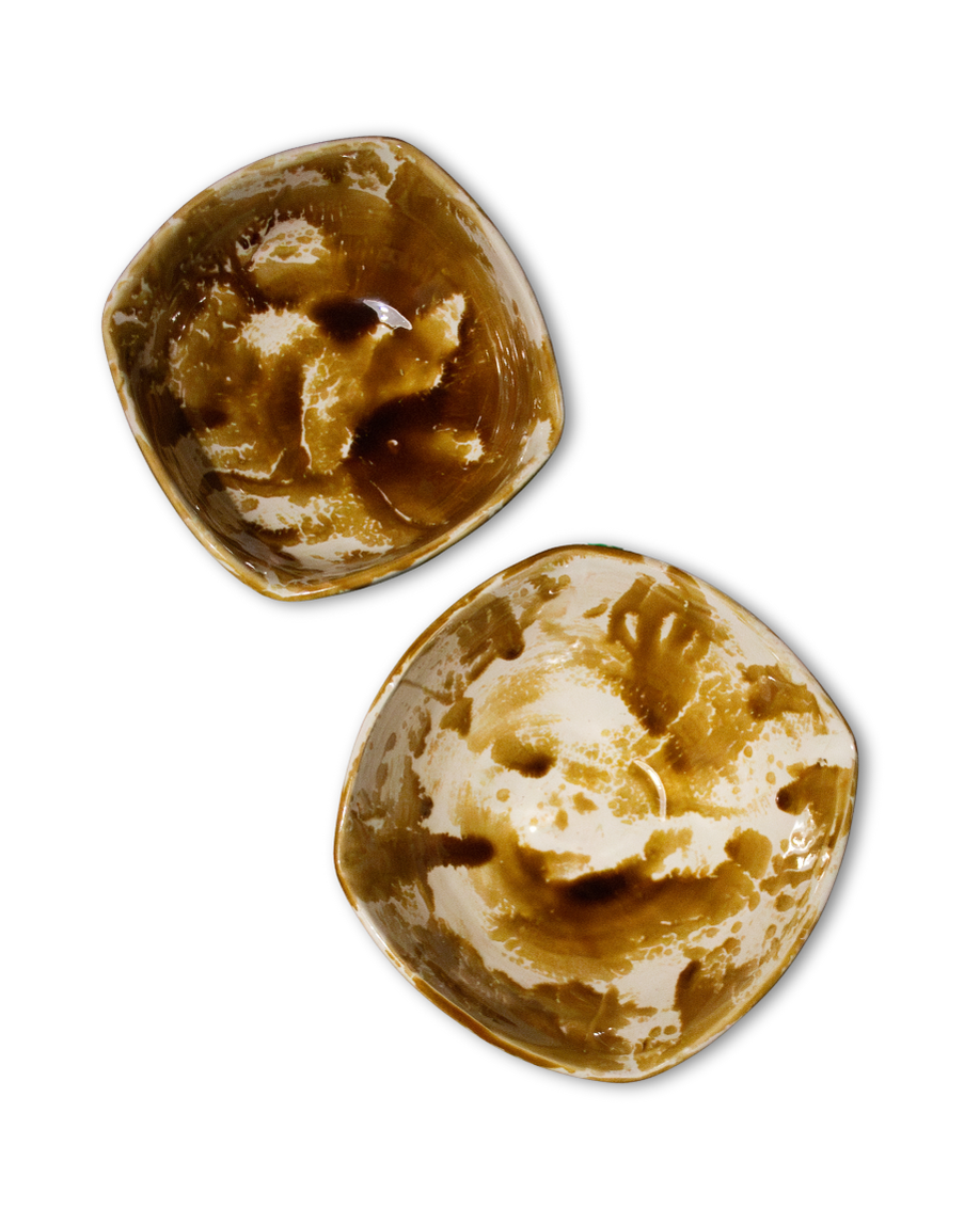 Set de 2 potterys pequeños con bordes irregulares hecho a mano en cerámica artesanal en tonos ocres.