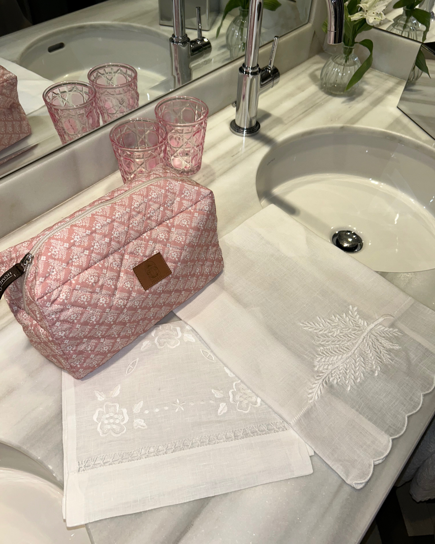Set de dos toallas de invitado confeccionadas en hilo con bordado de rama.